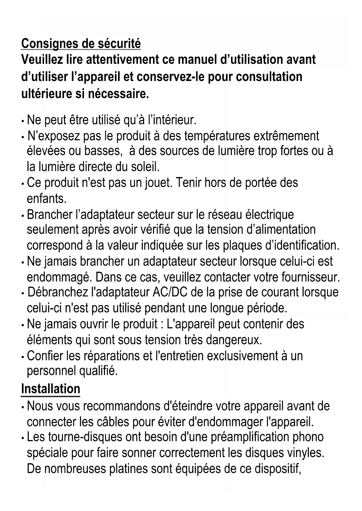 - Les tourne-disques ont besoin d'une préamplification phono spéciale pour faire sonner correctement les disques vinyles. De nombreuses platines sont équipées de ce dispositif,d'autres non. Ce produit ne dispose pas d'un préamplificateur phono intégré.