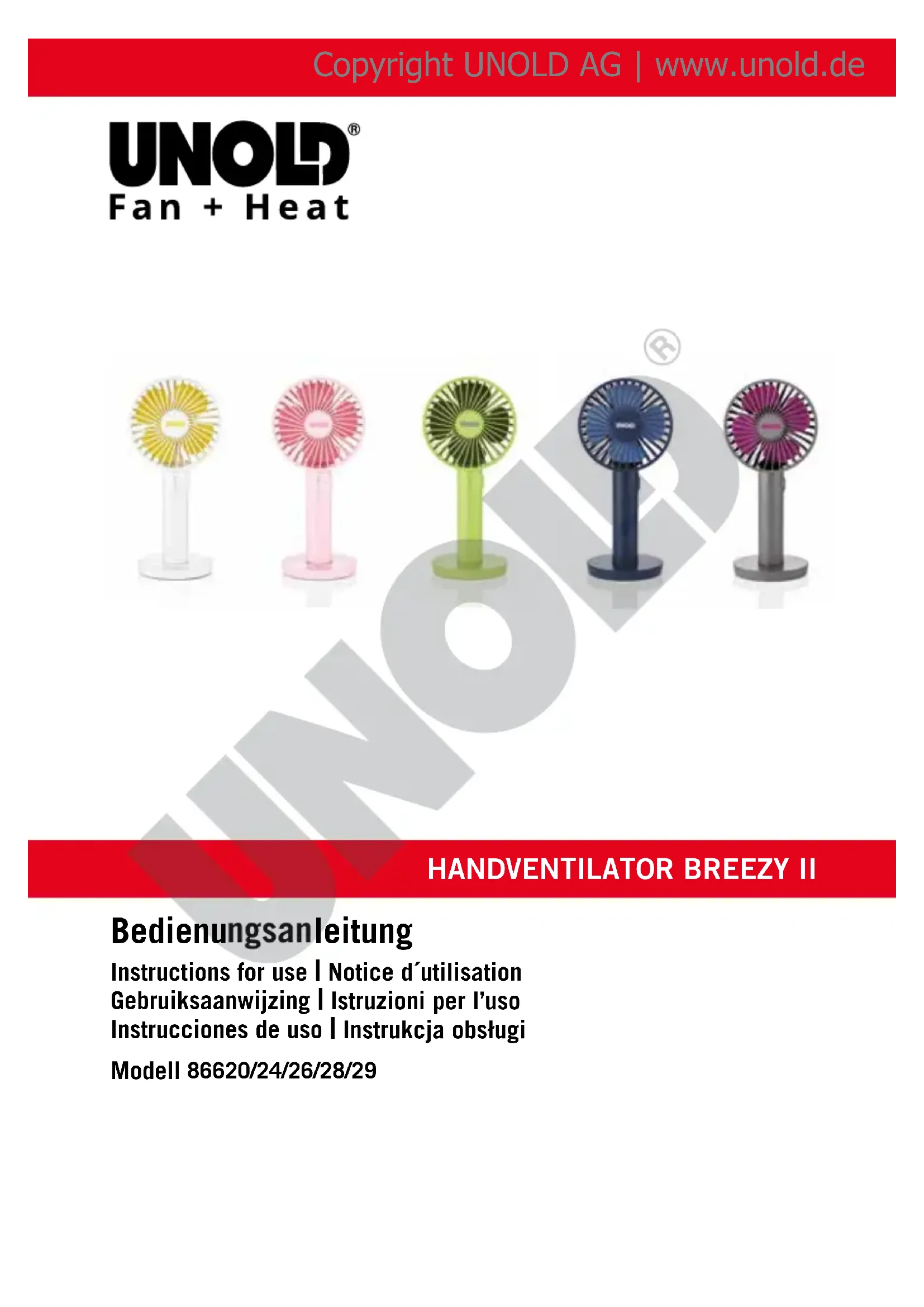 Retrouvez gratuitement la notice de l'appareil Breezy II 86620 UNOLD au format PDF.