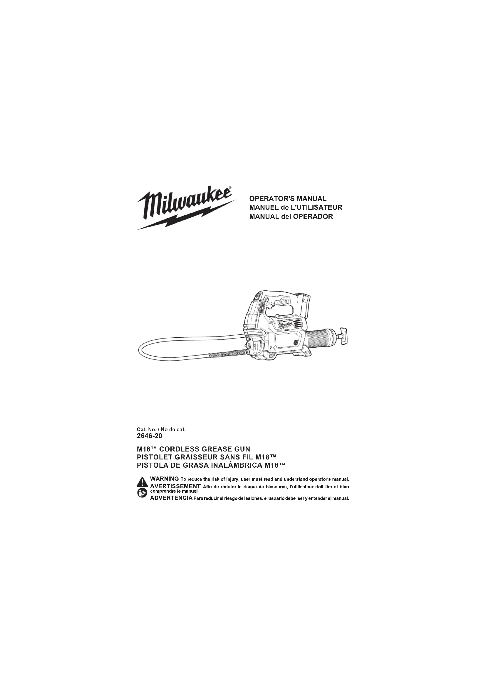 Retrouvez gratuitement la notice de l'appareil M18 264622CT MILWAUKEE au format PDF.