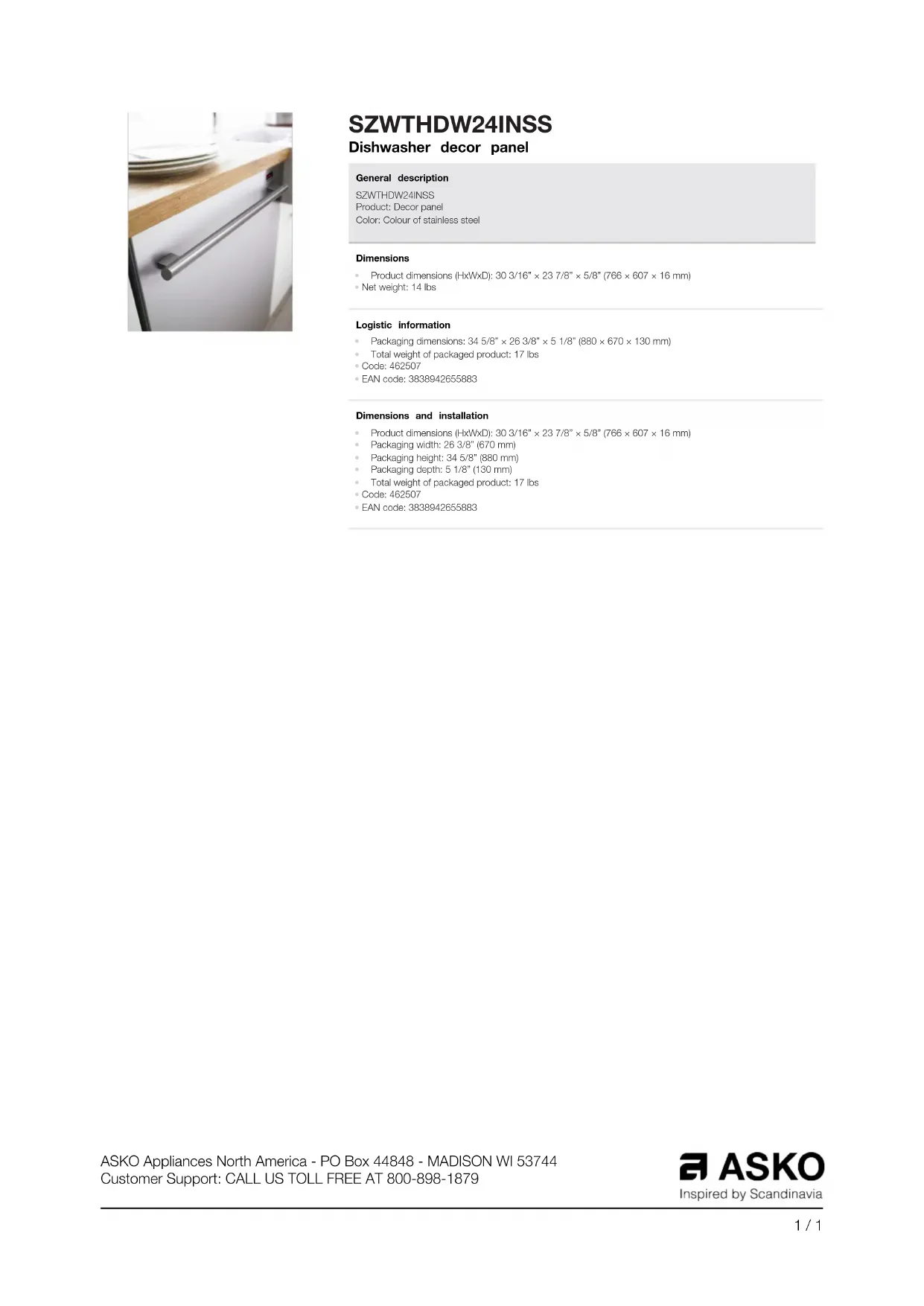 Retrouvez gratuitement la notice de l'appareil SZWTHDW24INSS ASKO au format PDF.