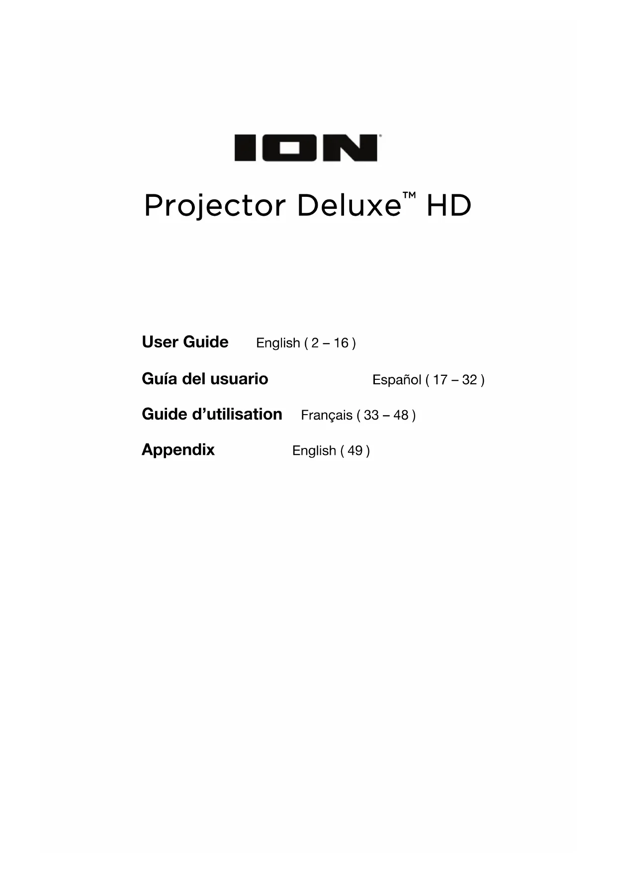 Retrouvez gratuitement la notice de l'appareil Projector Deluxe HD ION au format PDF.