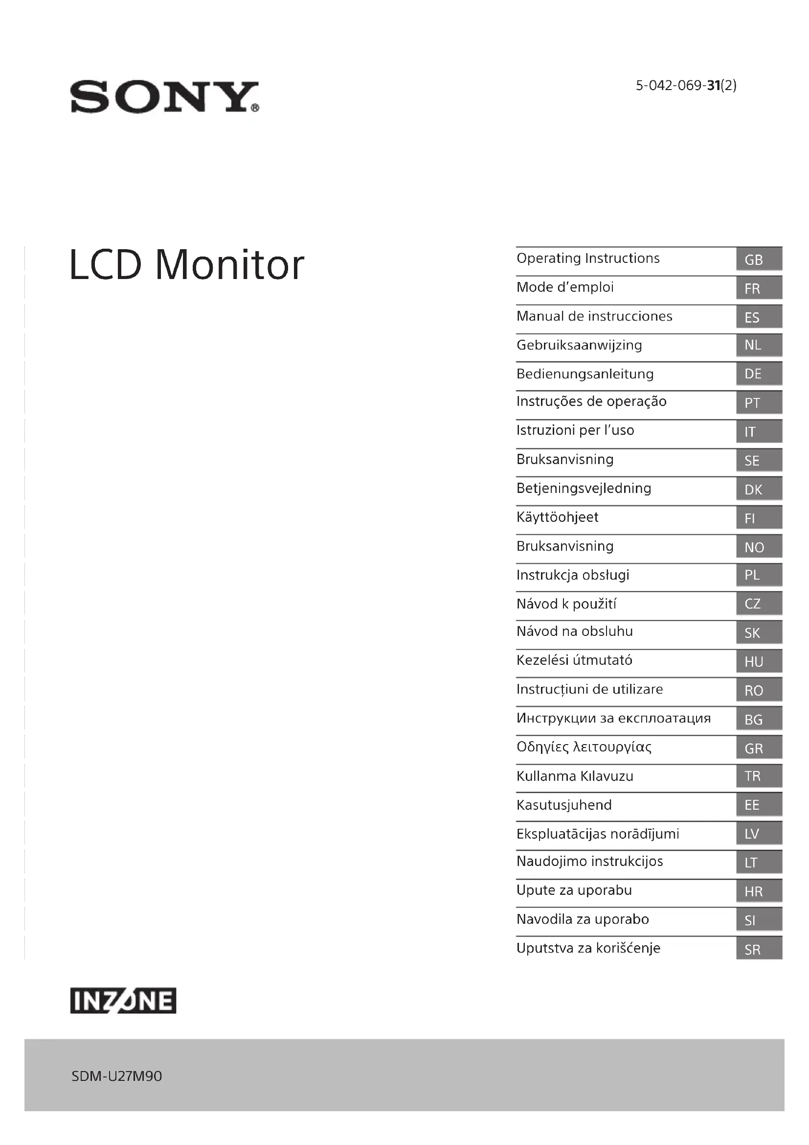 - SivousenvisagezdenepasutiliserleMoniteurLCDpendantplusieursjours,ilestconseillédeledébrancherdel’alimentationsecteurpourdesraisonsdesécuritéetdeprotectiondel’environnement.•LeMoniteurLCDétanttoujourssoustensionlorsqu’ilestsimplementéteint,débranchezlafiched’alimentationsecteurdelaprisesecteurpourlemettrecomplètementhorstension.SDM-U27M90 5-042-069-31(2)