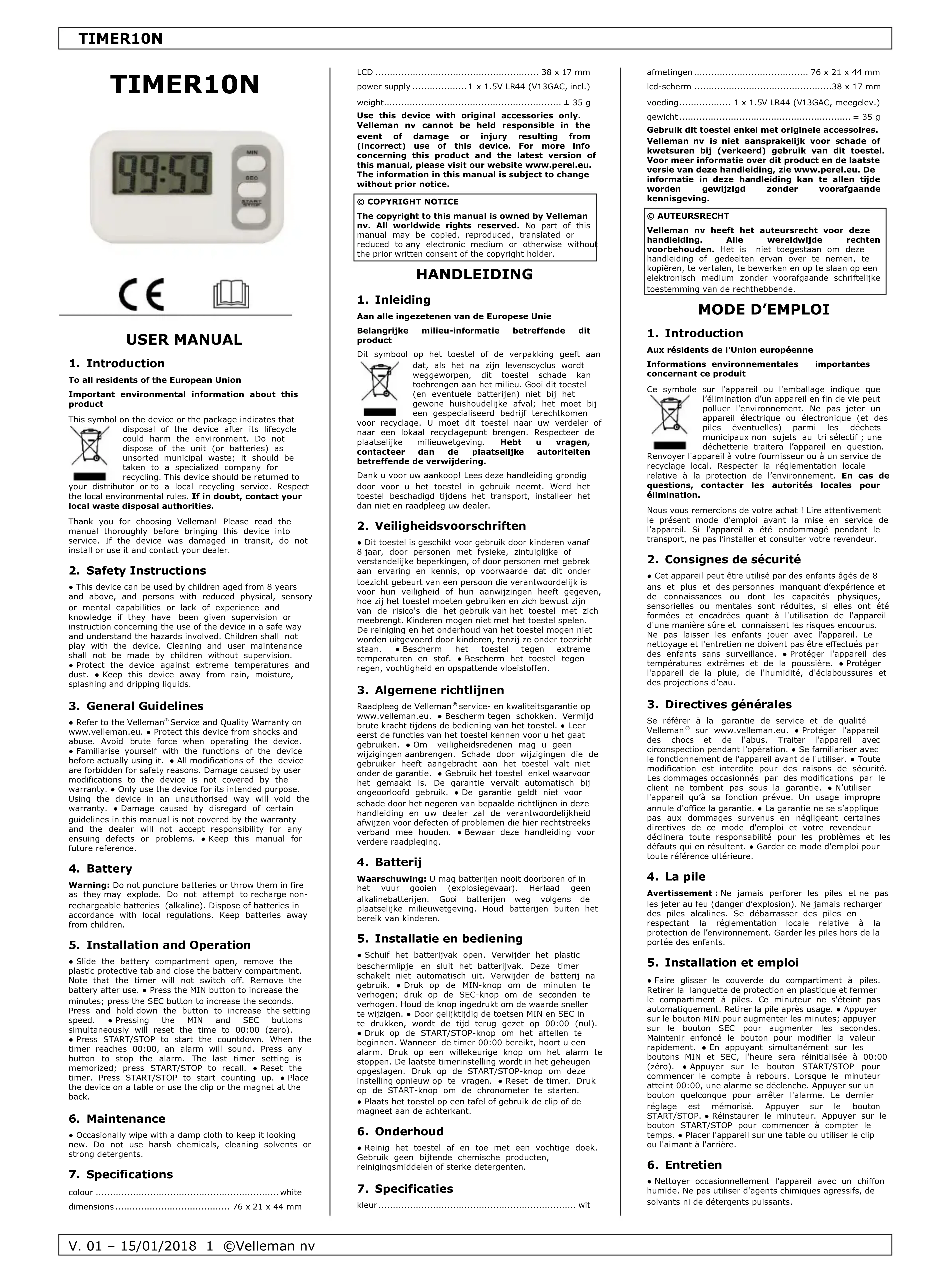 Retrouvez gratuitement la notice de l'appareil TIMER10N VELLEMAN au format PDF.