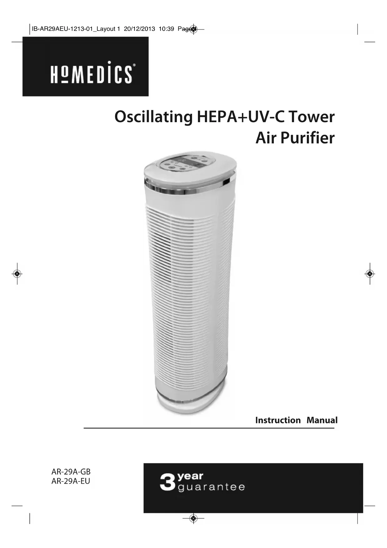 AR29EU - Purificateur d'air HOMEDICS - Notice d'utilisation et mode d'emploi gratuit
