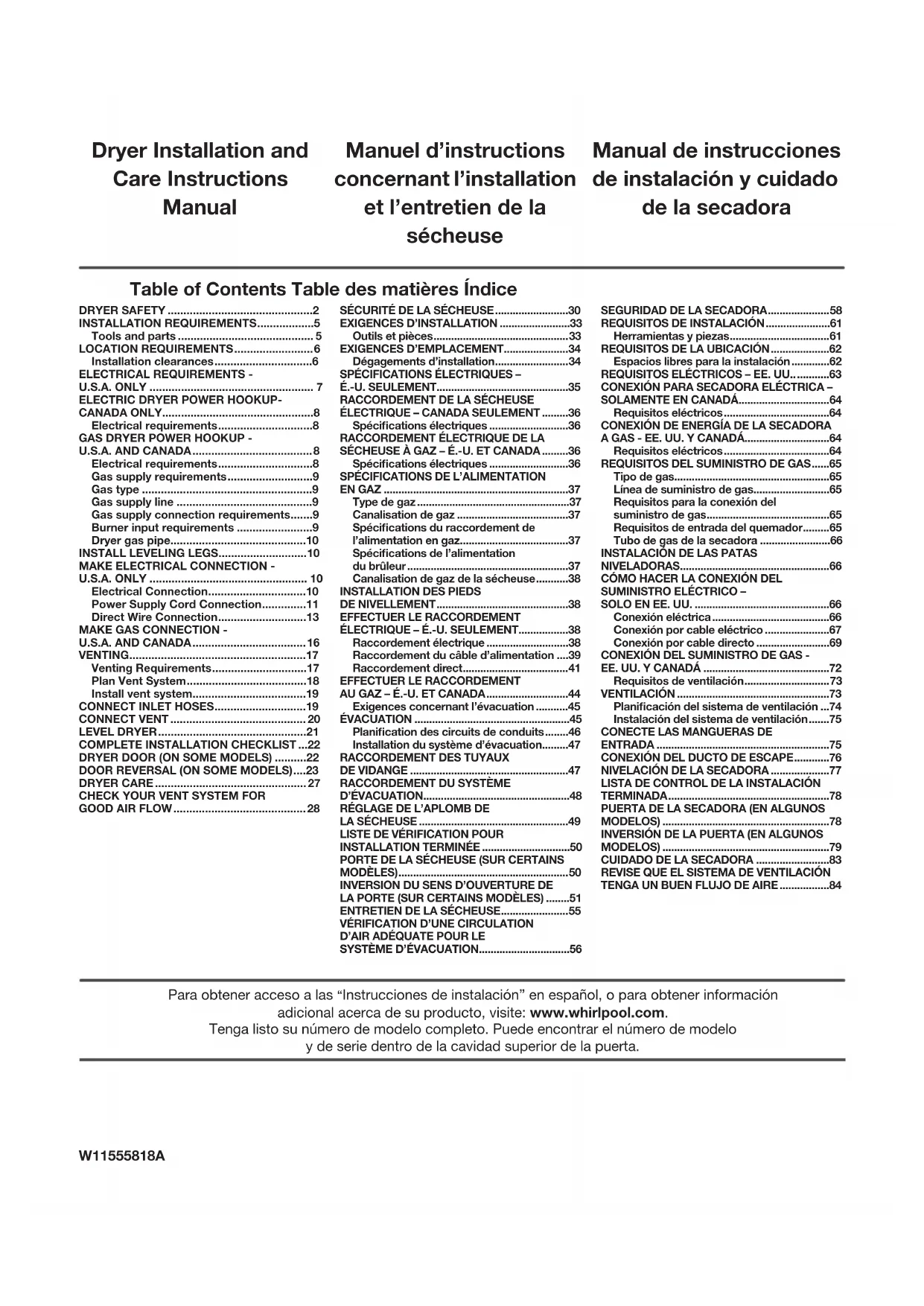 garniture de base avant de déplacer la sécheuse. Voir«Garniture de base». Réinstallation de la sécheuse Suivre les « Instructions d’installation » pour choisir l’emplacement, ajuster l’aplomb de la sécheuse et la raccorder. AVERTISSEMENT Risque de choc électrique Déconnecter la source de courant électrique avant l'entretien. Replacer pièces et panneaux avant de faire la remise en marche. Le non-respect de ces instructions peut causer un décès ou un choc électrique.