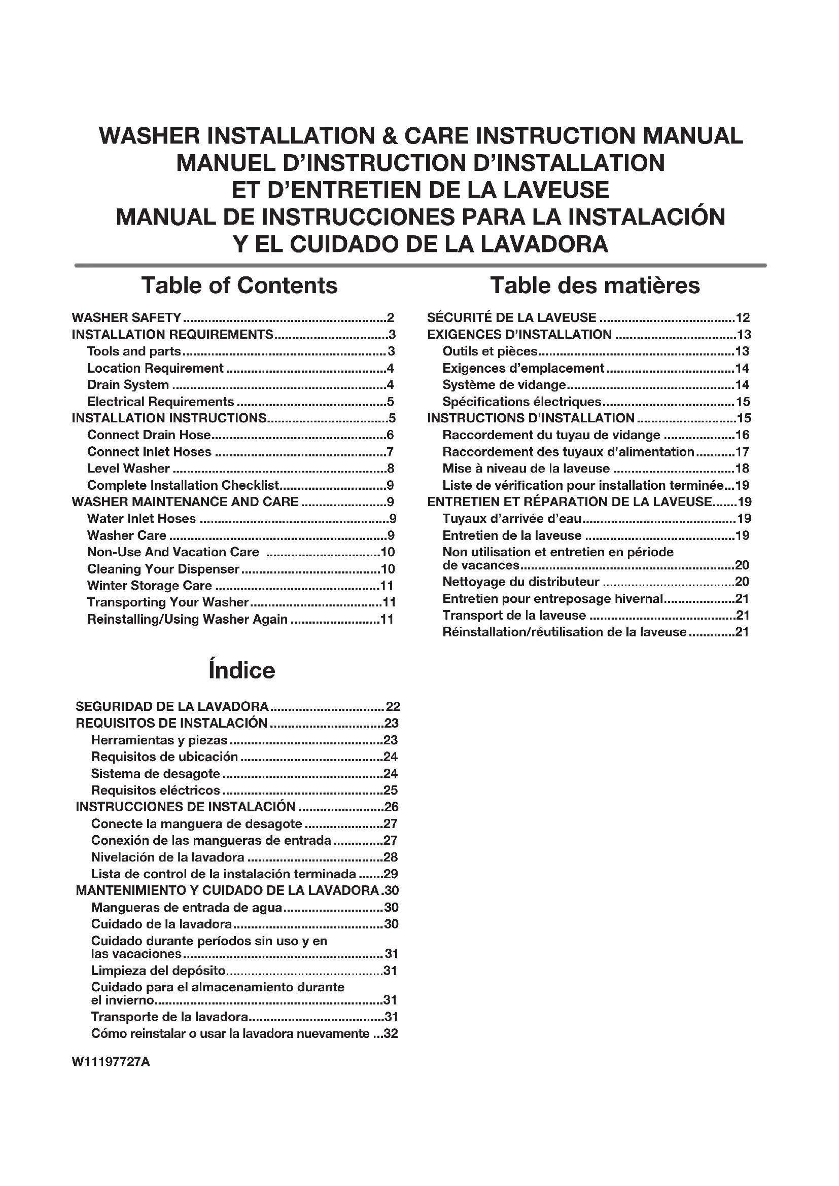 DELALAVEUSE Pour réinstaller la laveuse après une période de non-utilisation, de vacances, de remisage pour l’hiver ou aprèsun déménagement: