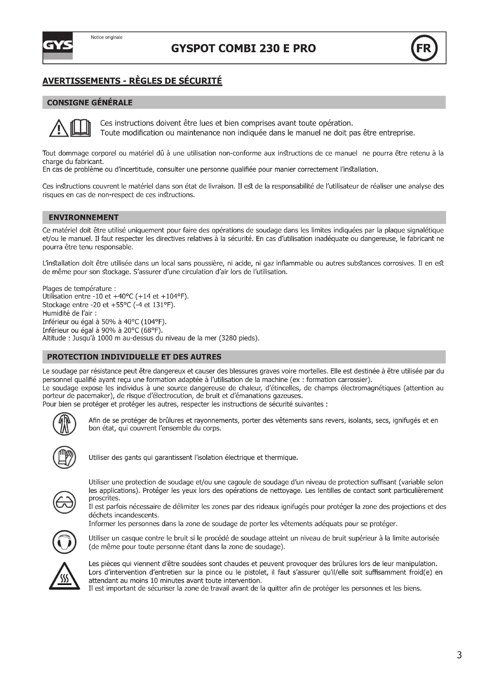 MODE D'EMPLOI Gyspot Combi 230 E PRO GYS