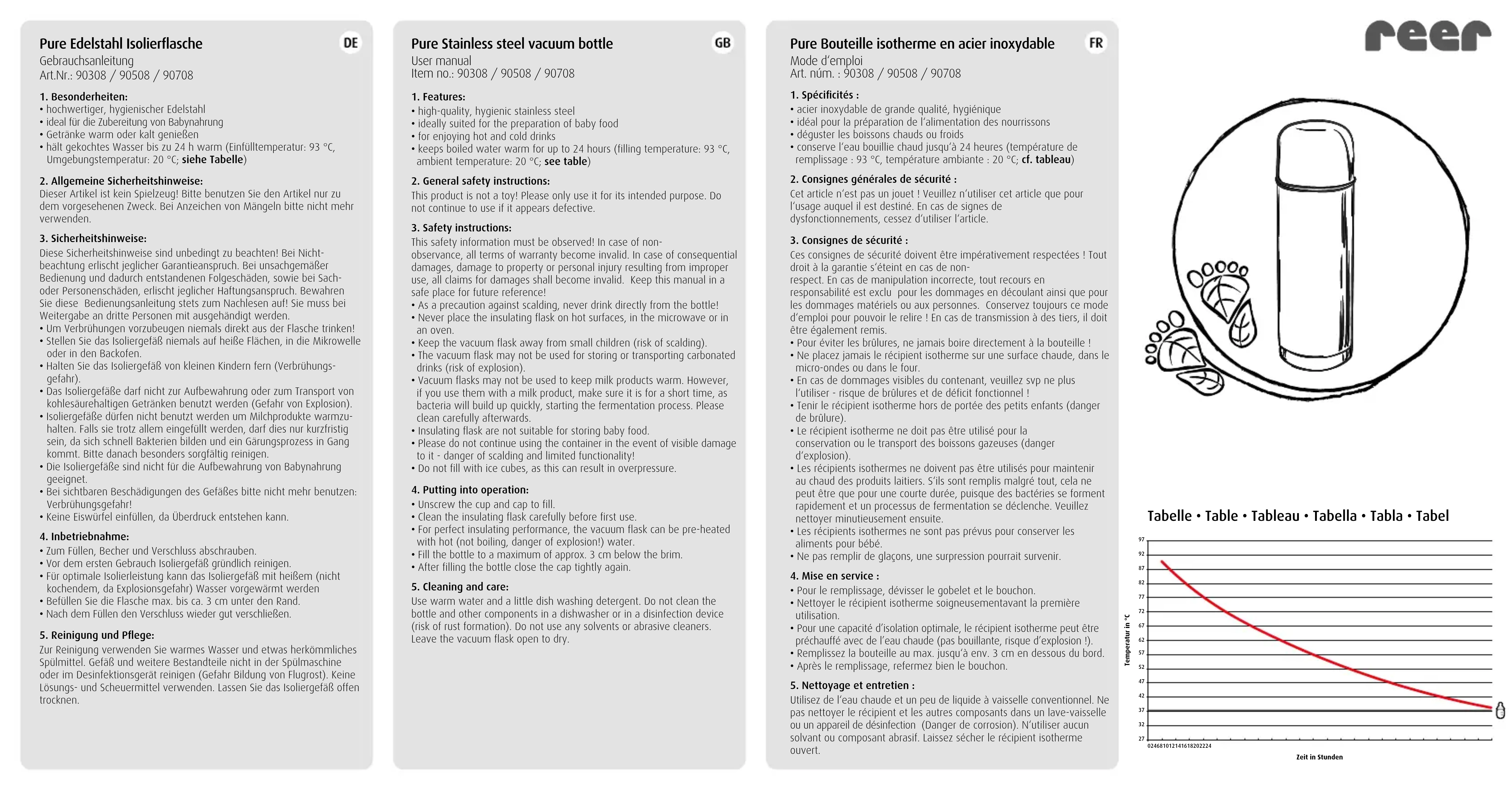 90708 - Bouteille isolante Reer - Notice d'utilisation et mode d'emploi gratuit