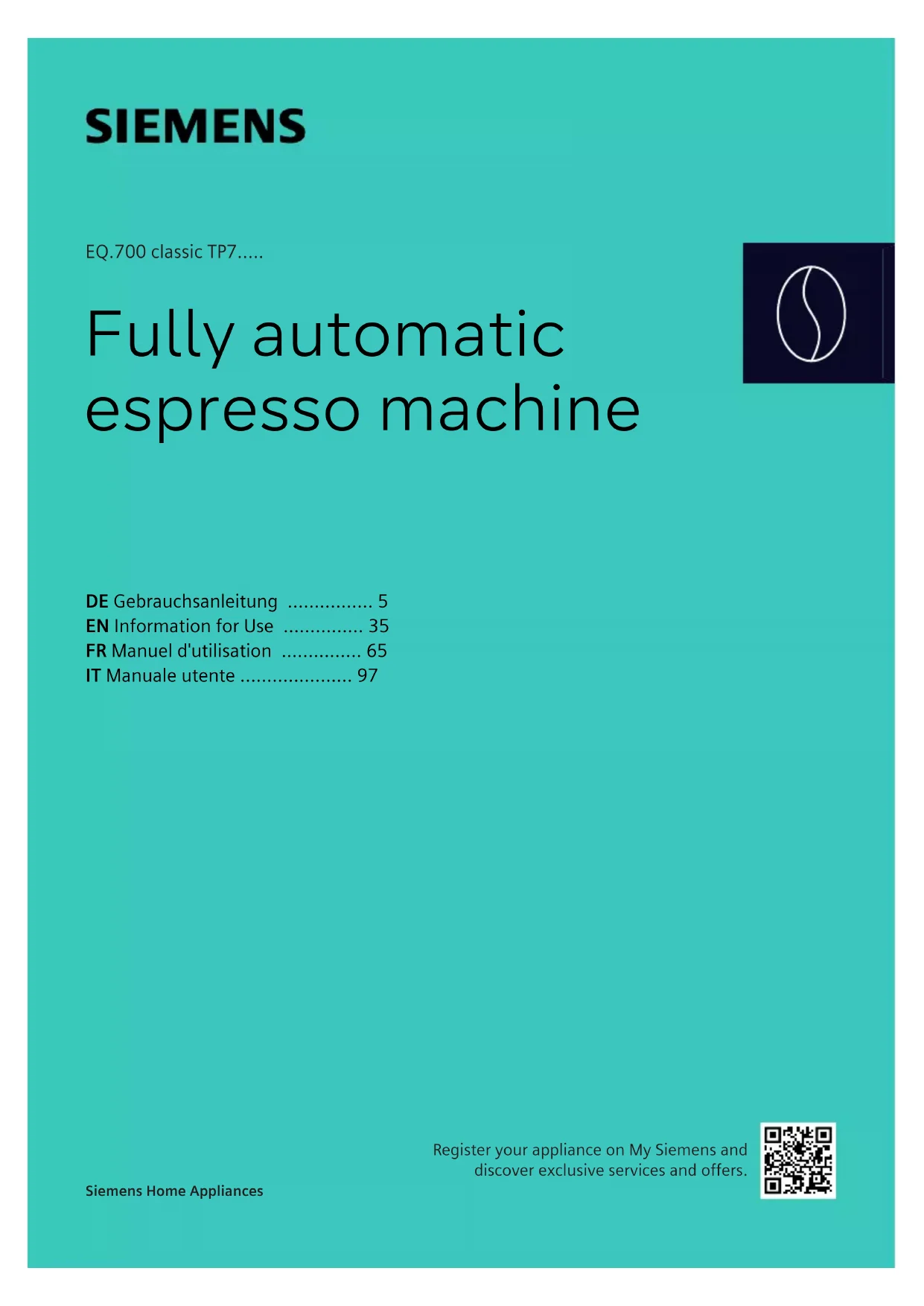 EQ.700 TP703D09 - Machine à café SIEMENS - Notice d'utilisation et mode d'emploi gratuit