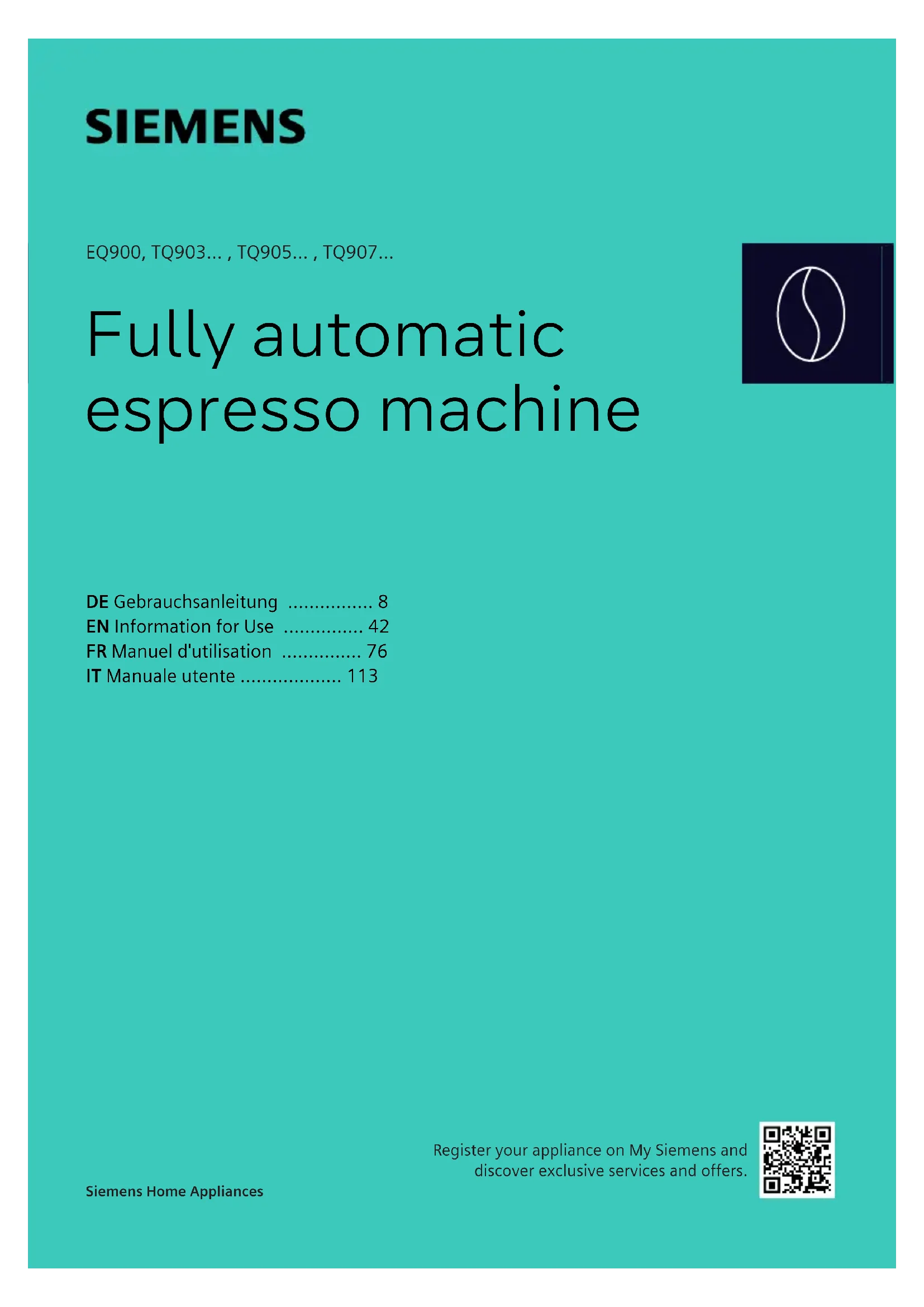 Retrouvez gratuitement la notice de l'appareil EQ.900 TQ905D03 SIEMENS au format PDF.
