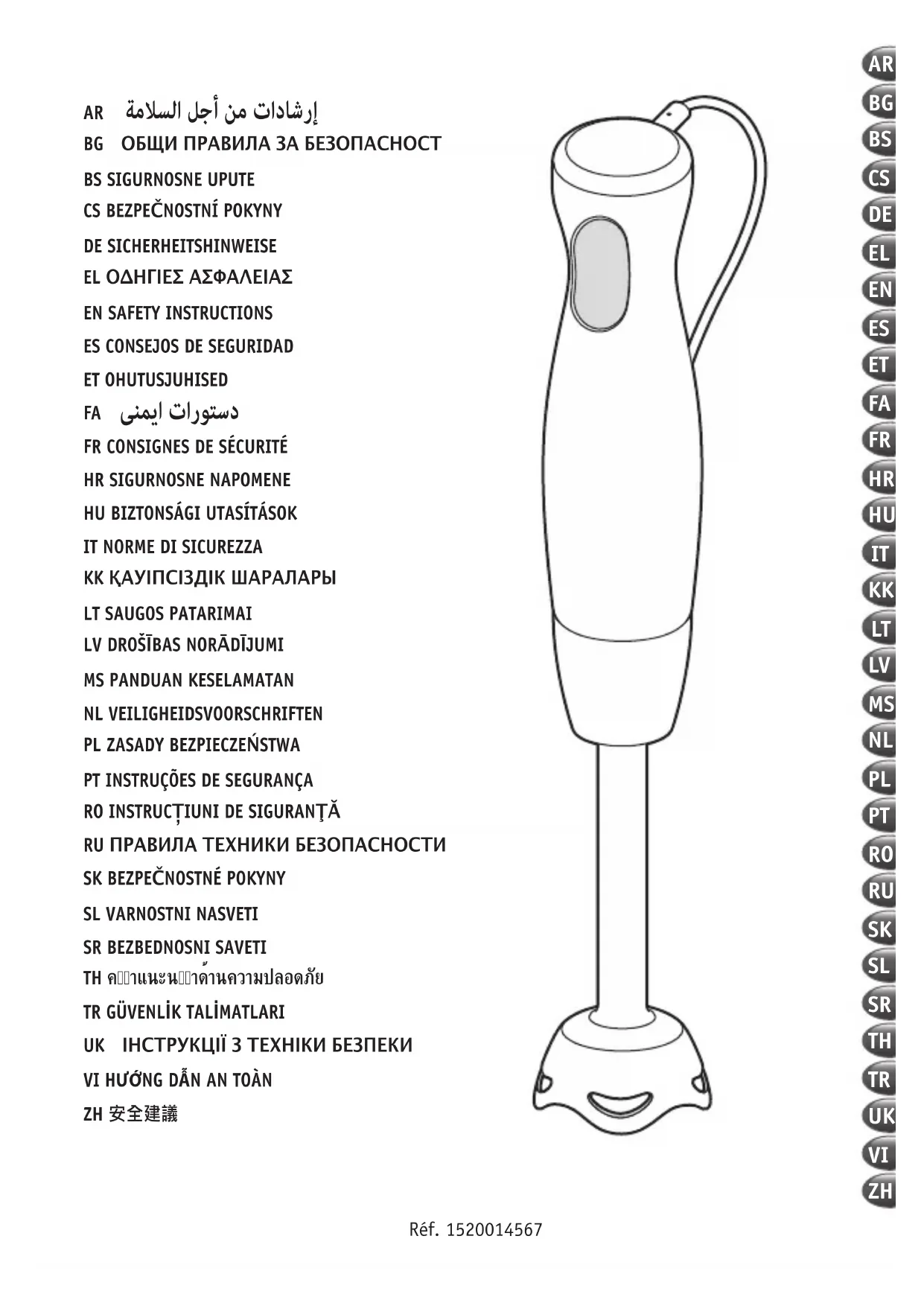 | Sécurité | Système de sécurité empêchant le fonctionnement si le bol n'est pas correctement fixé. Ne pas plonger l'appareil dans l'eau. |