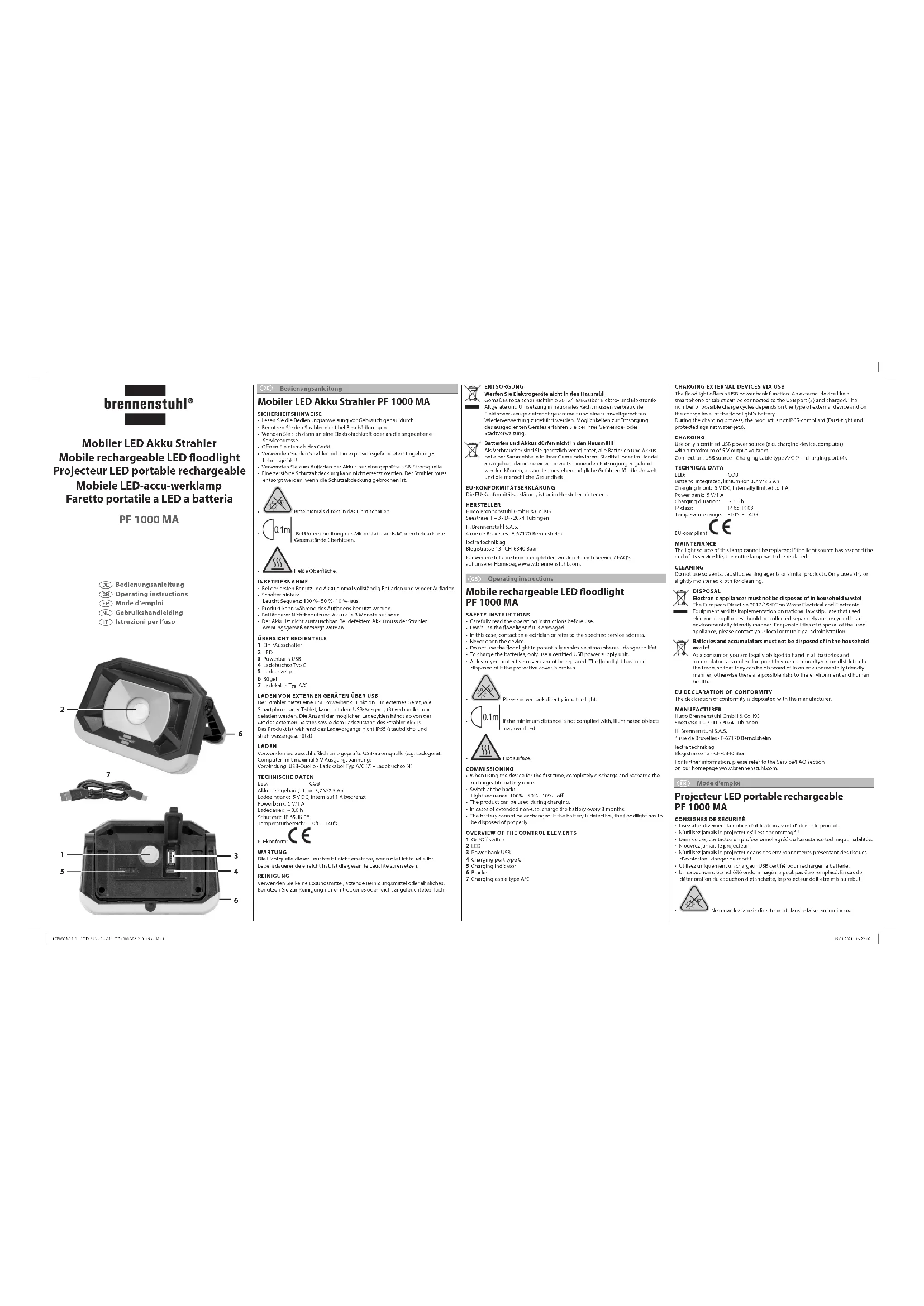 PF 1000 MA - Éclairage BRENNENSTUHL - Notice d'utilisation et mode d'emploi gratuit