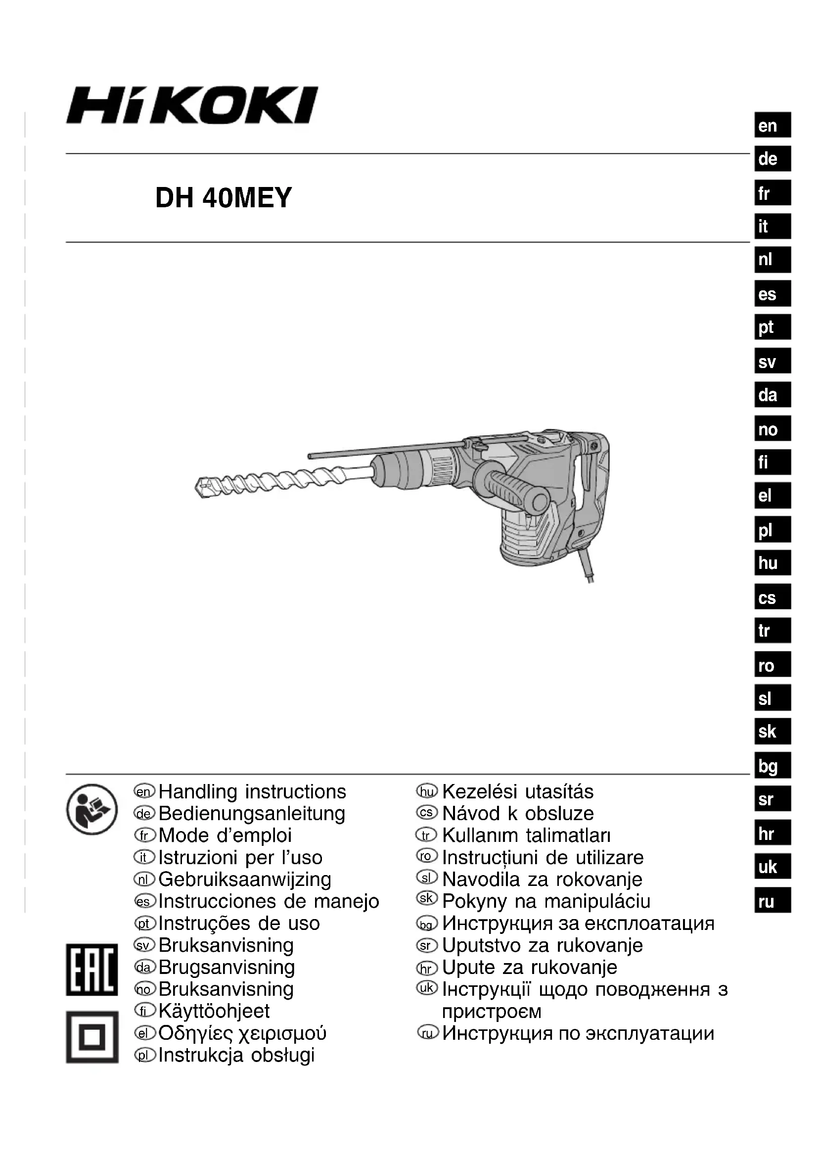 Téléchargez la notice de votre Perceuse au format PDF gratuitement ! Retrouvez votre notice DH 40MEY - HITACHI et reprennez votre appareil électronique en main. Sur cette page sont publiés tous les documents nécessaires à l'utilisation de votre appareil DH 40MEY de la marque HITACHI.