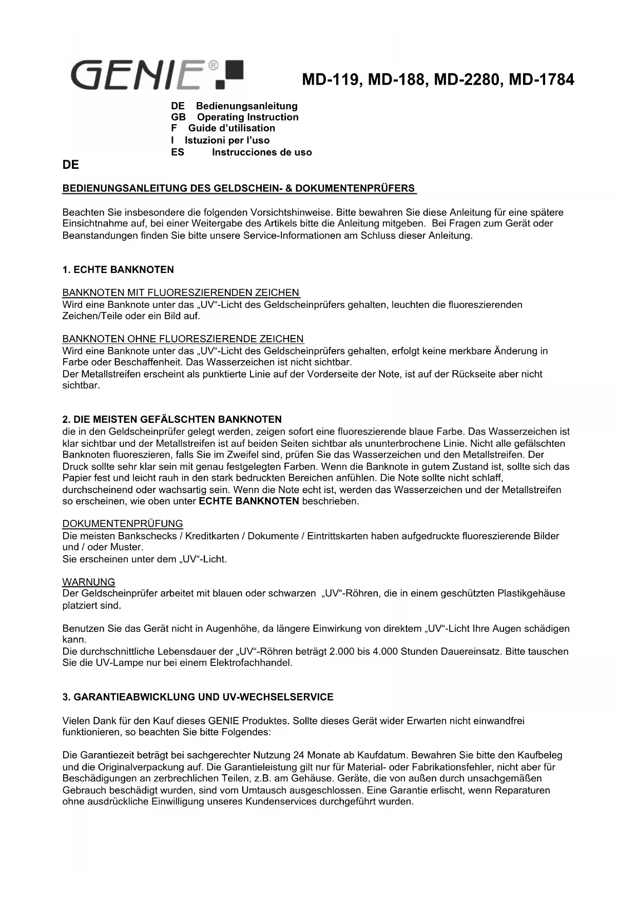 MD 188 - Détecteur Genie - Notice d'utilisation et mode d'emploi gratuit