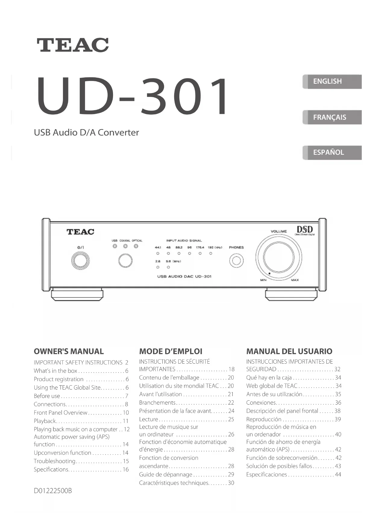 UD301X - Convertisseur numérique / analogique TEAC - Notice d'utilisation et mode d'emploi gratuit