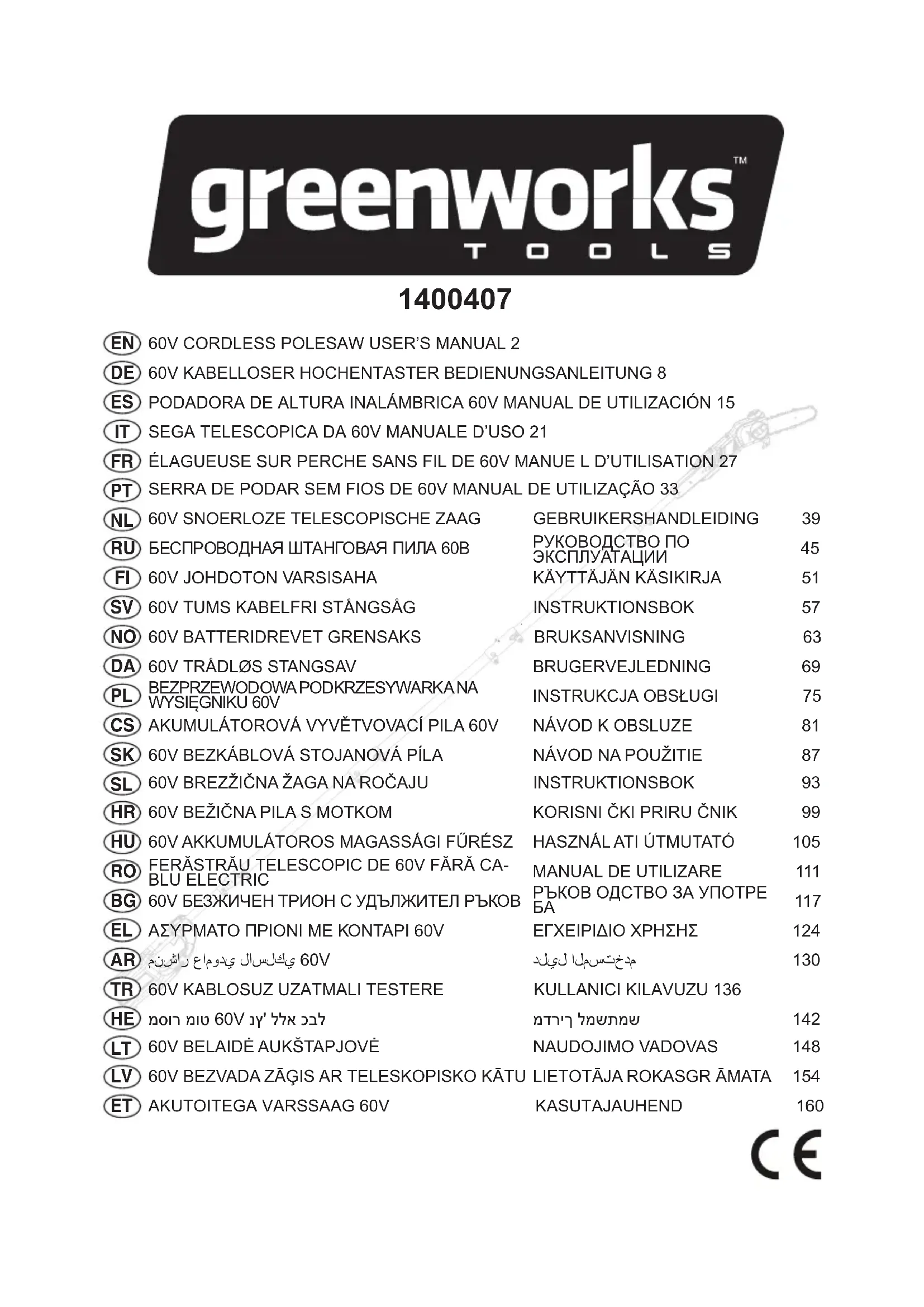 GD60PS - Scie GREENWORKS - Notice d'utilisation et mode d'emploi gratuit