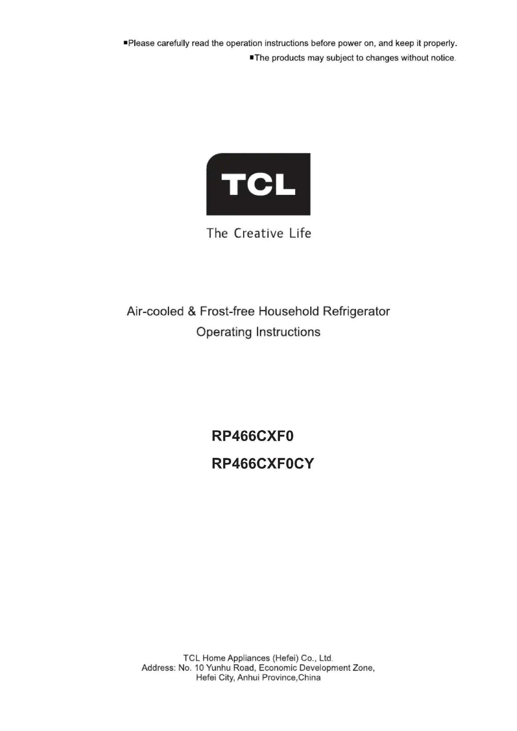 RP466CXF0 - Réfrigérateur TCL - Notice d'utilisation et mode d'emploi gratuit