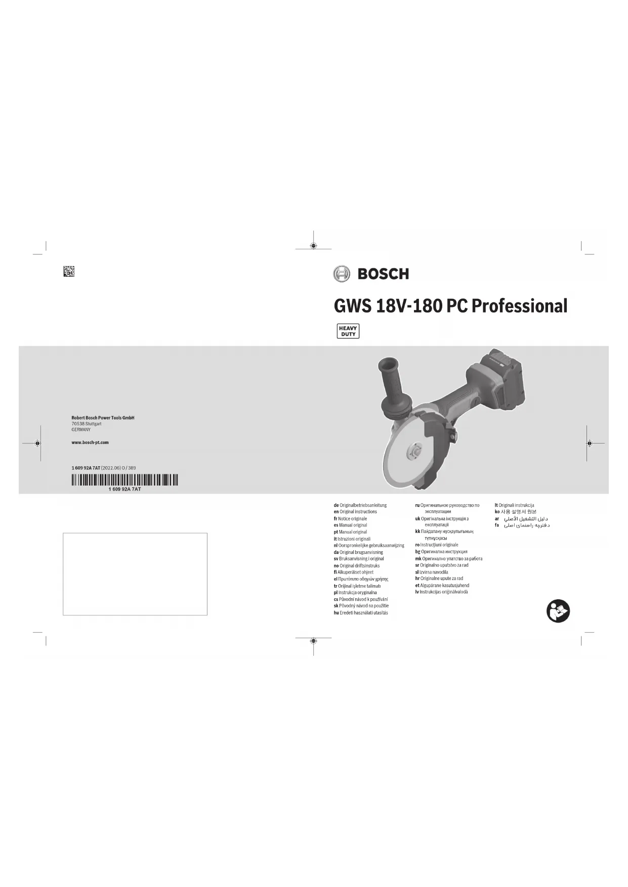 Retrouvez gratuitement la notice de l'appareil GWS 18V180 PC Professional BOSCH au format PDF.