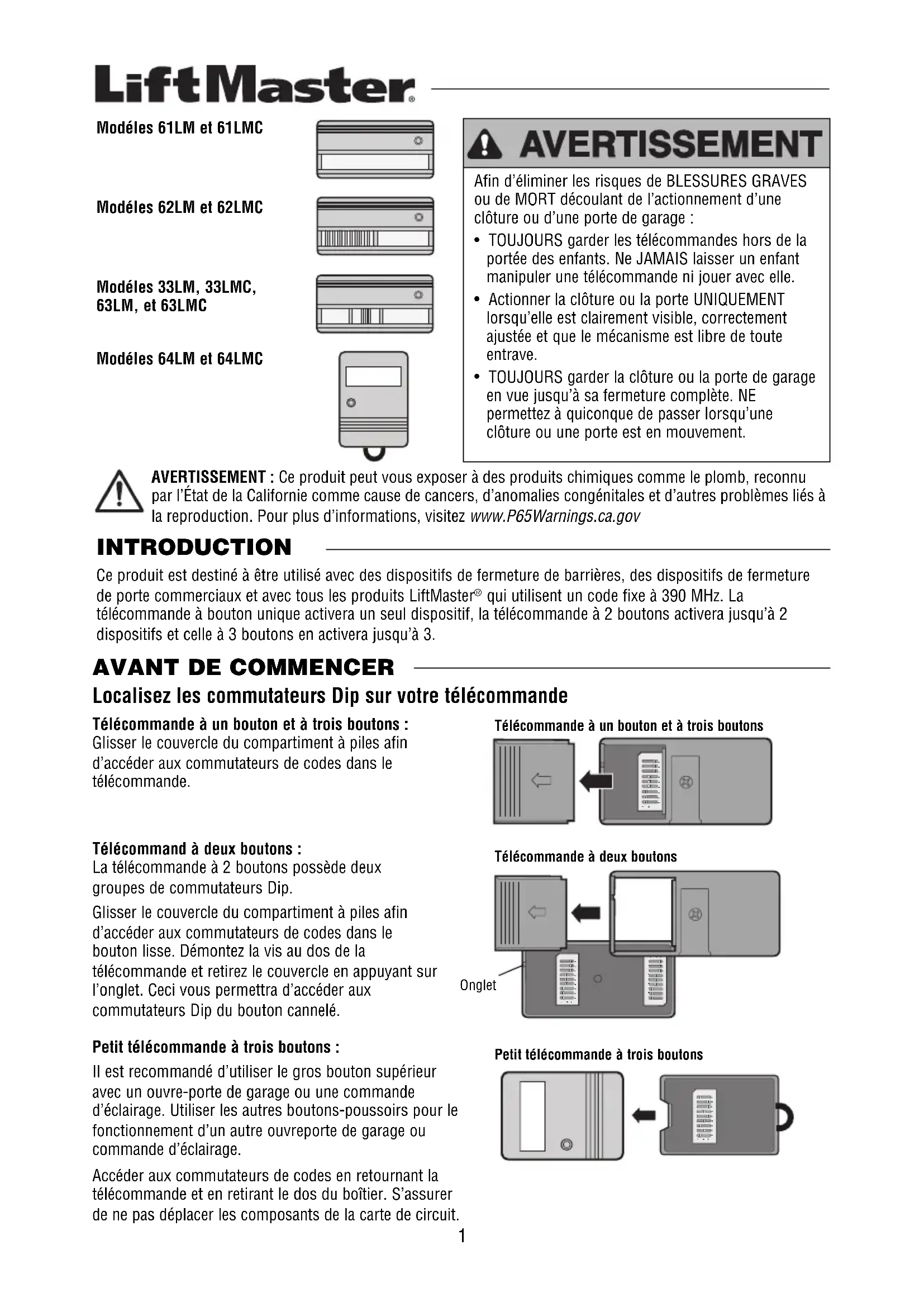 63LMV - Télécommande LIFT-MASTER - Notice d'utilisation et mode d'emploi gratuit