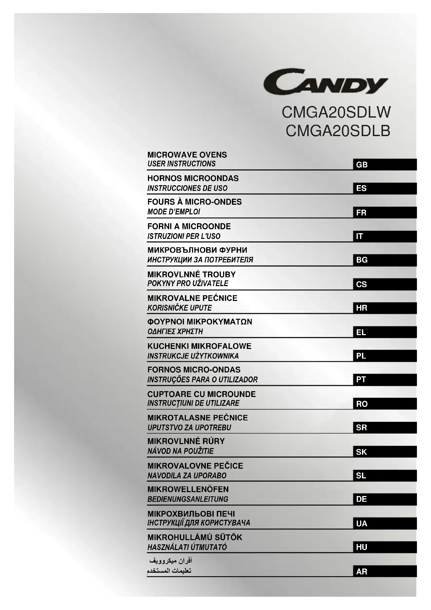 Retrouvez gratuitement la notice de l'appareil CMGA20SDLB CANDY au format PDF.