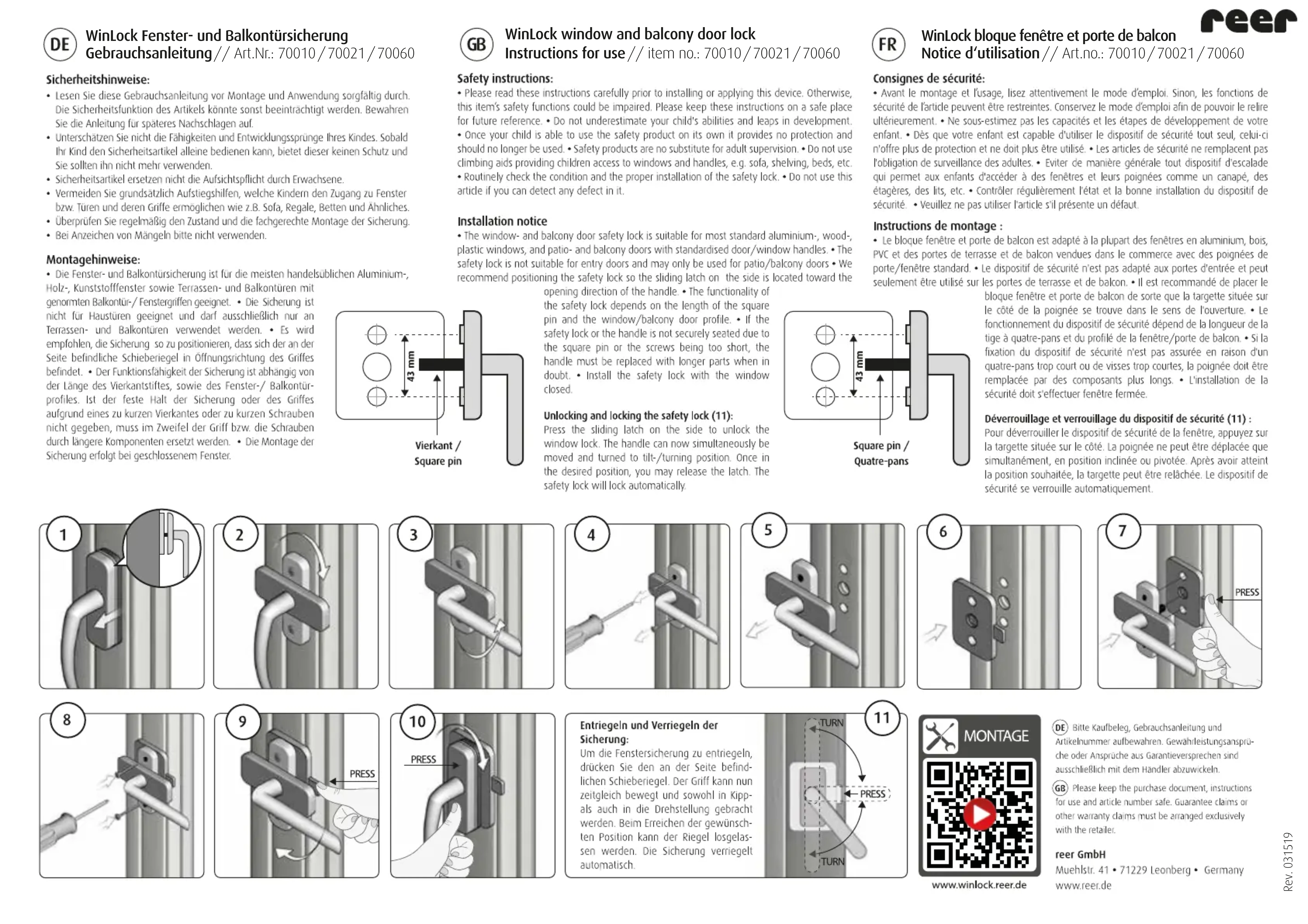 Retrouvez gratuitement la notice de l'appareil WinLock 70021 Reer au format PDF.
