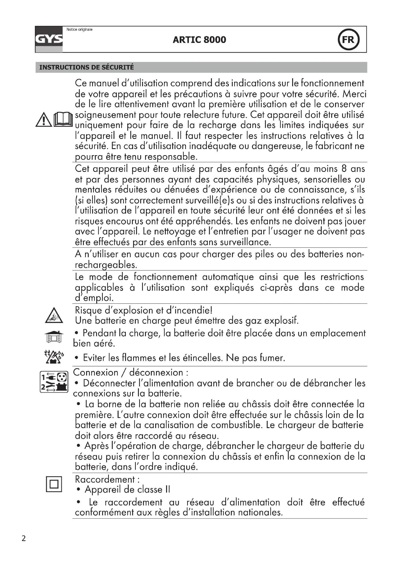 Artic 8000 - Chargeur de piles GYS - Notice d'utilisation et mode d'emploi gratuit