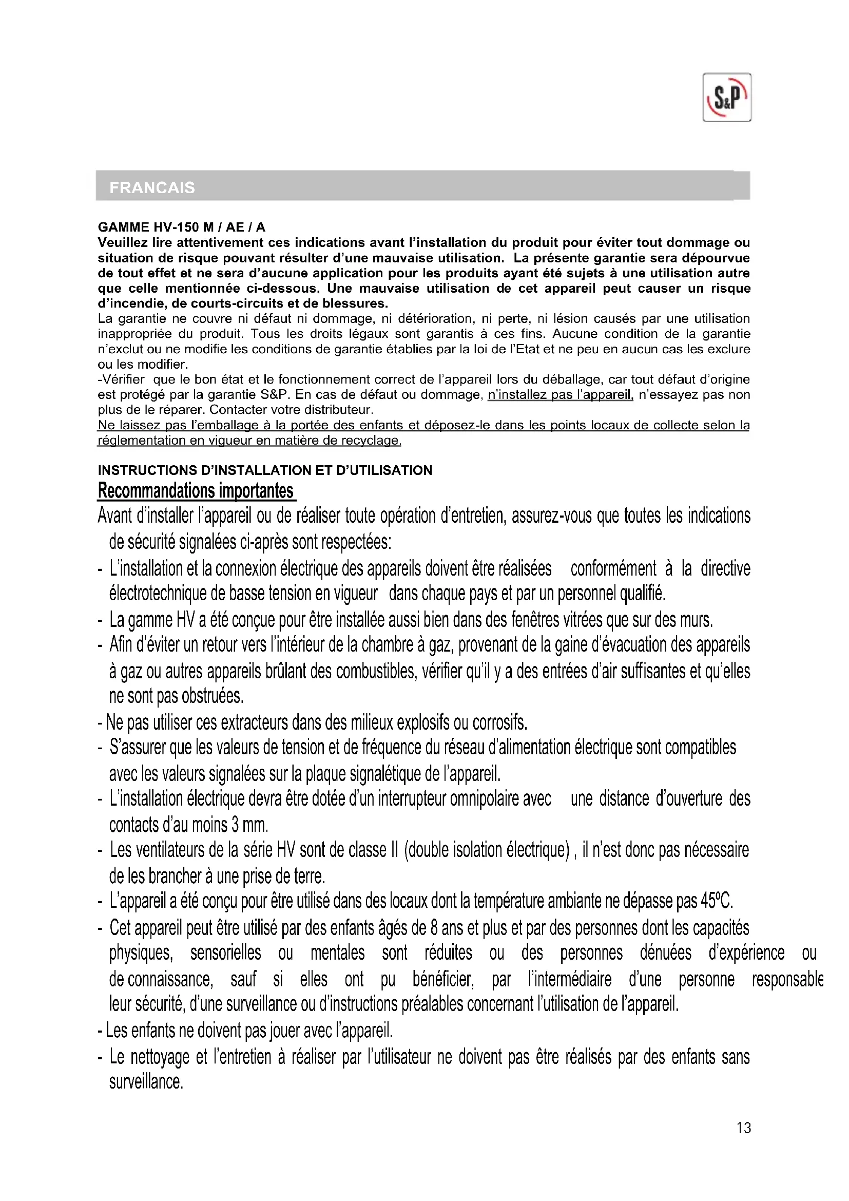 MODE D'EMPLOI HVSTYLVENT Soler & Palau