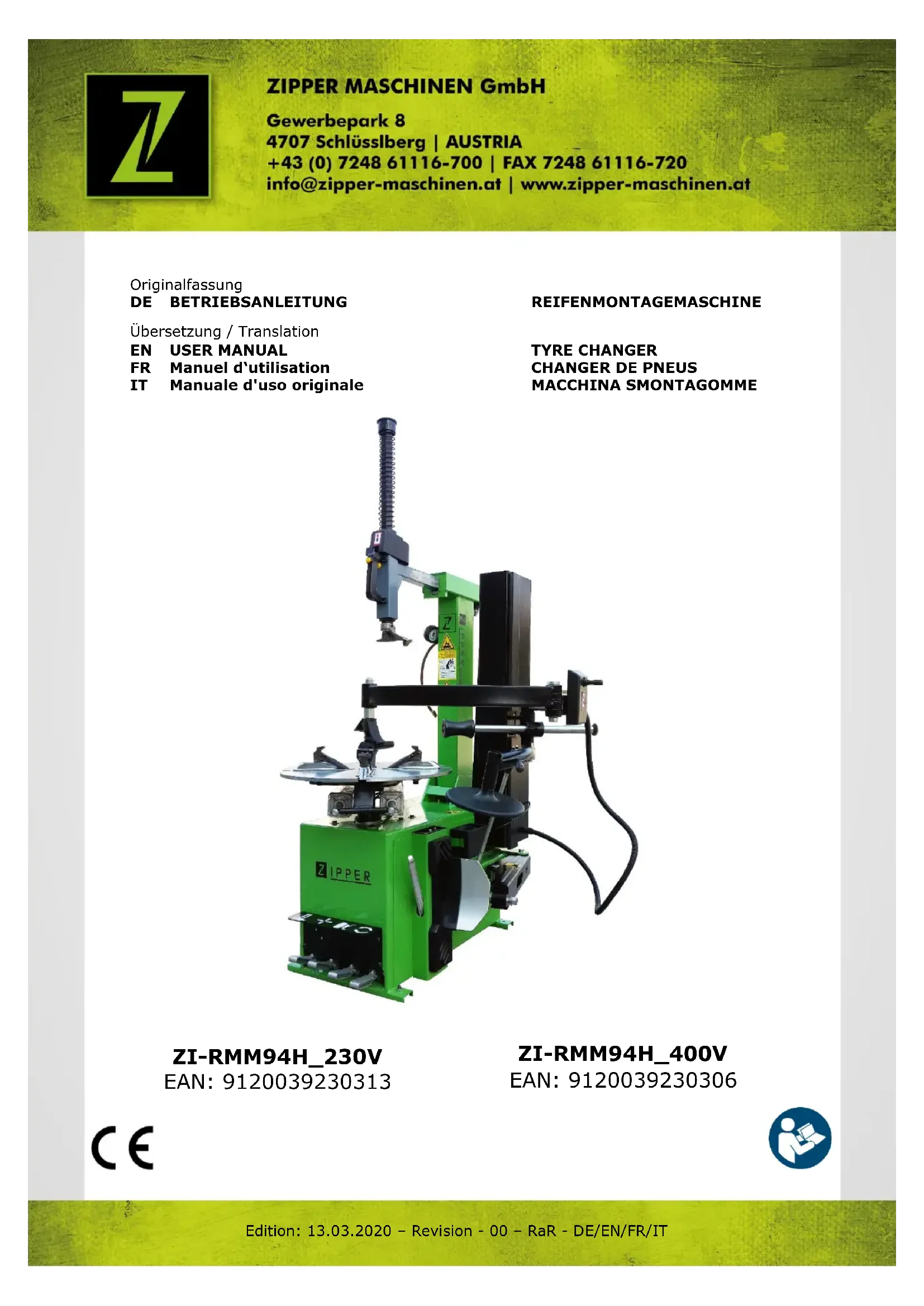 Retrouvez gratuitement la notice de l'appareil ZIRMM94H_400V Zipper au format PDF.