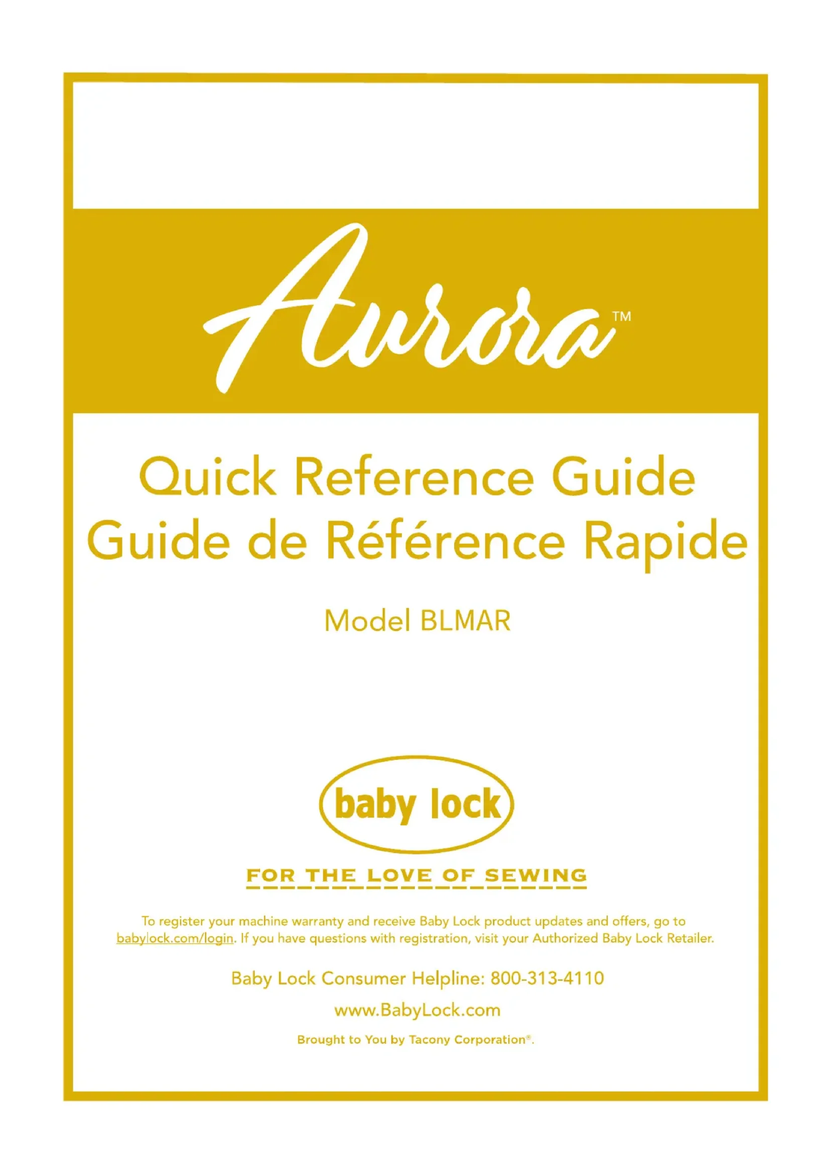 Aurora - Machine à coudre BABY LOCK - Notice d'utilisation et mode d'emploi gratuit