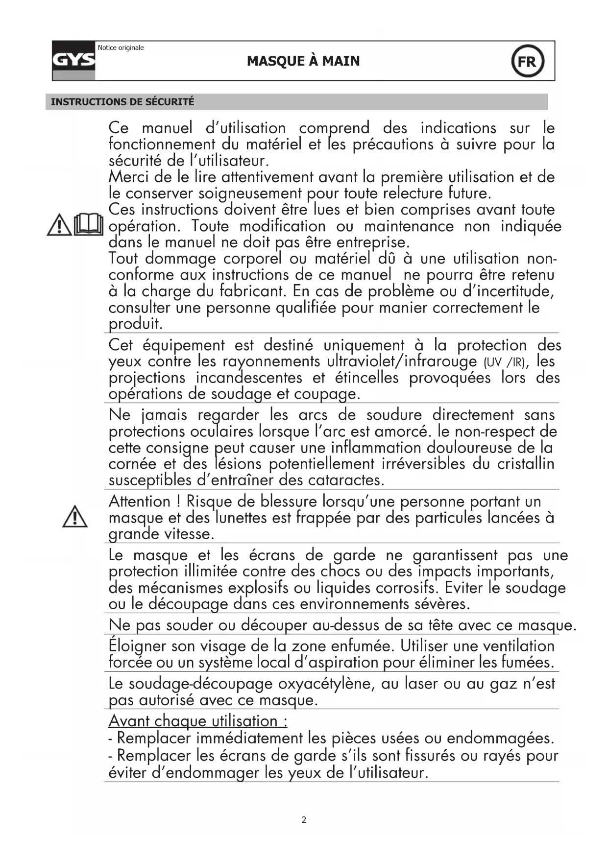 Retrouvez gratuitement la notice de l'appareil Hand Mask GYS au format PDF.