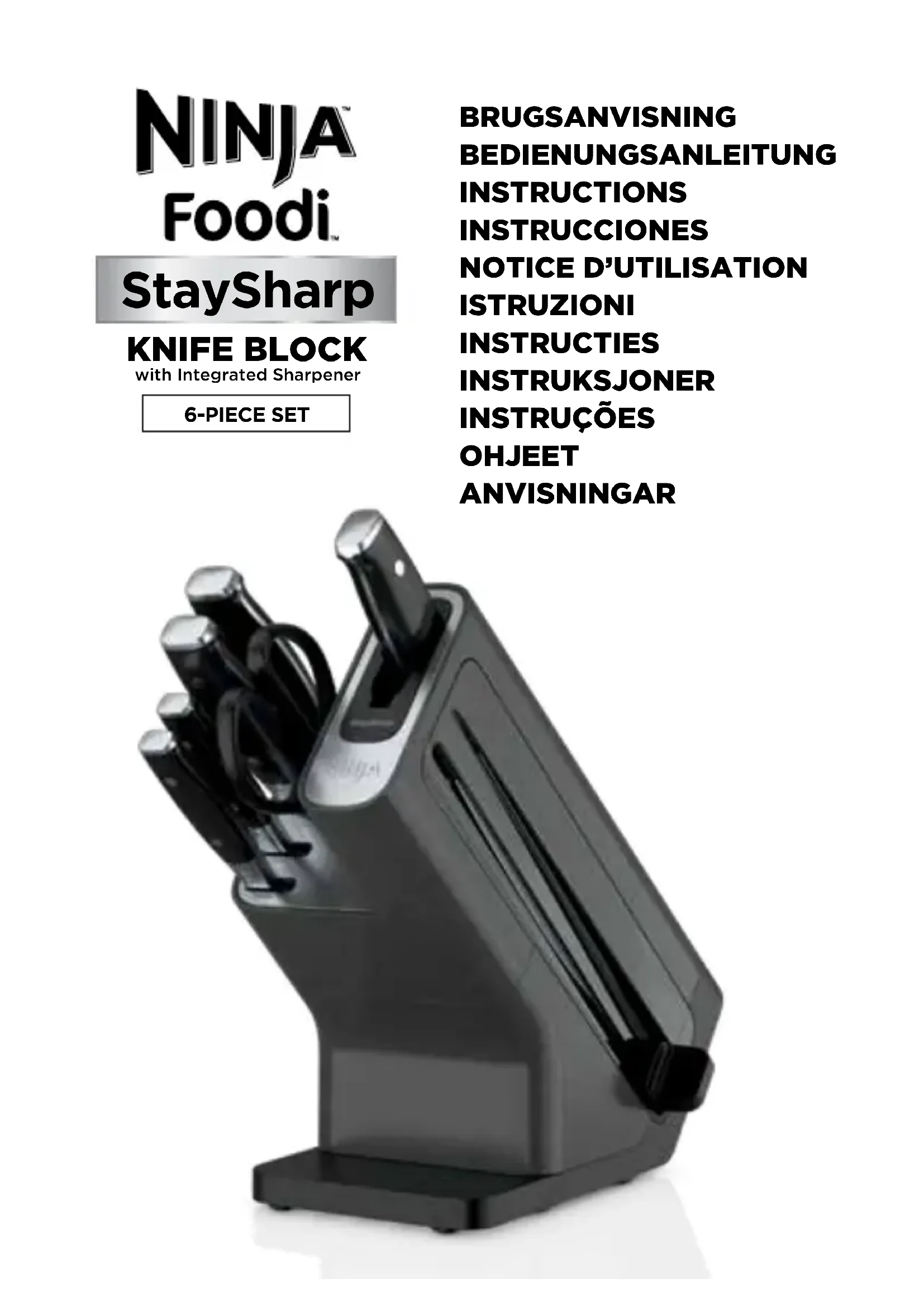 Merci d’avoir acheté le bloc couteaux Ninja™ Foodi™ StaySharp™ et bienvenue dans la famille Ninja! Nous espérons que vous appréciez vos couteaux et serez inspiré(e) en cuisine pour créer de nouveaux plats.Cette notice inclut des suggestions sur la manière d’entretenir vos couteaux. Pour plus d’informations, d’astuces ou de conseils et pour accéder à la FAQ, rendez-vous sur ninjakitchen.eu ou contactez le service client au 08008620453. AVERTISSEMENT - POUR RÉDUIRE LE RISQUE DE BLESSURE: