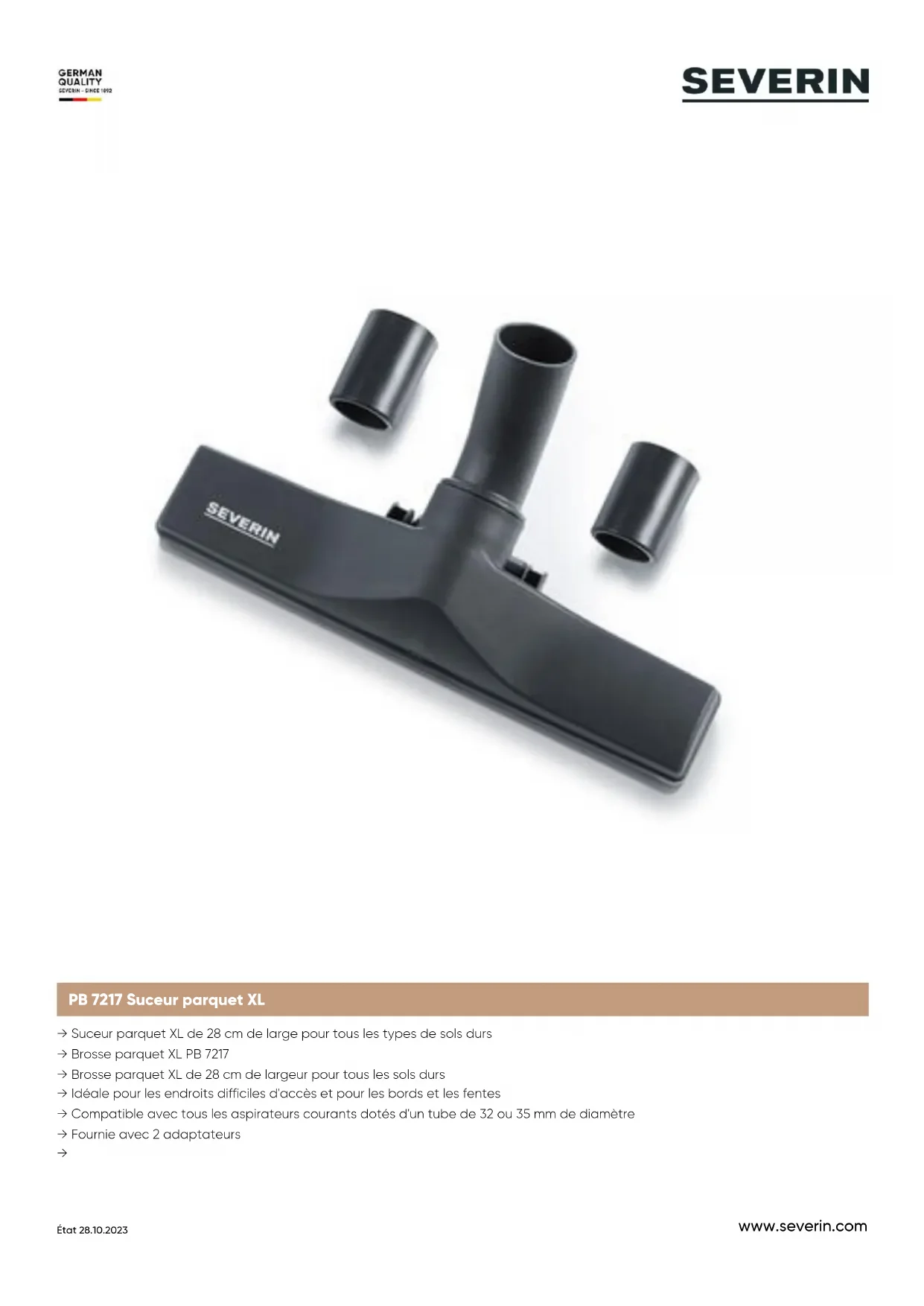 - Compatible avec tous les aspirateurs courants dotés d'un tube de 32 ou 35 mm de diamètre