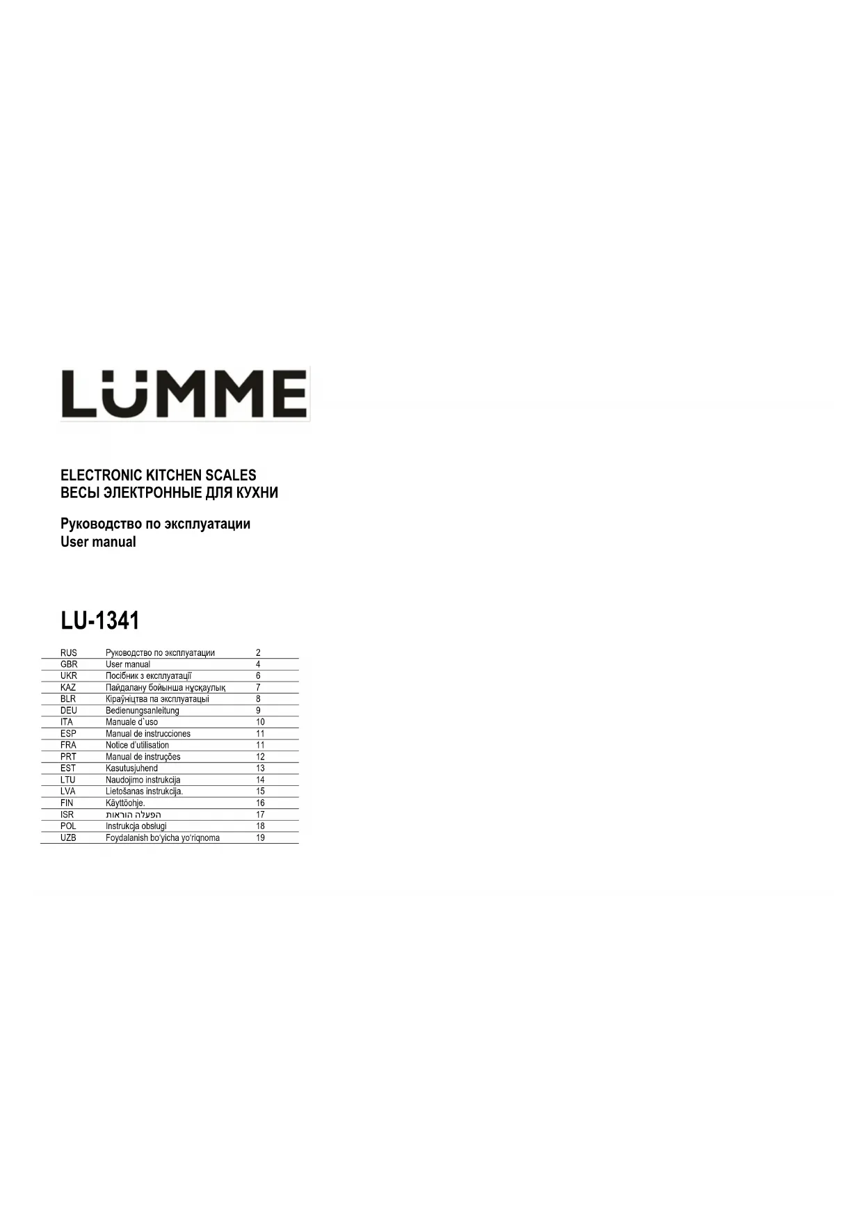 LU1341 - Balances de cuisine LUMME - Notice d'utilisation et mode d'emploi gratuit