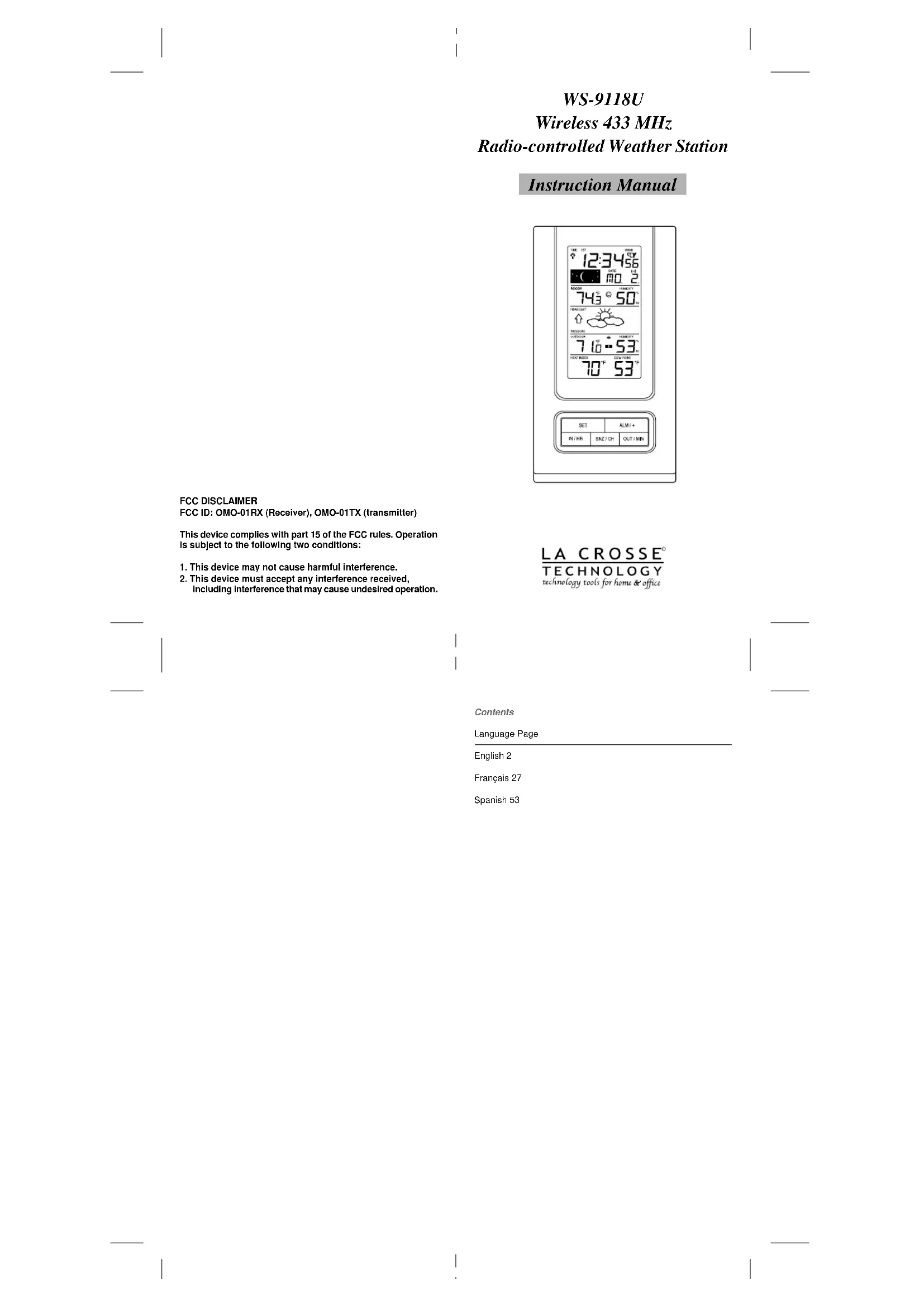 Retrouvez gratuitement la notice de l'appareil WS9118U LA CROSSE TECHNOLOGY au format PDF.