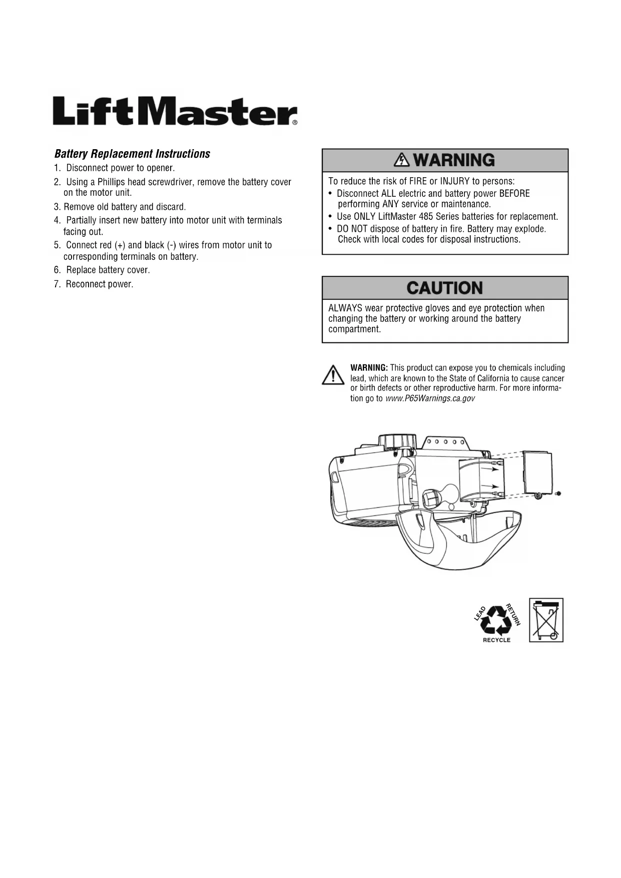 485LMC - Porte de garage LiftMaster - Notice d'utilisation et mode d'emploi gratuit