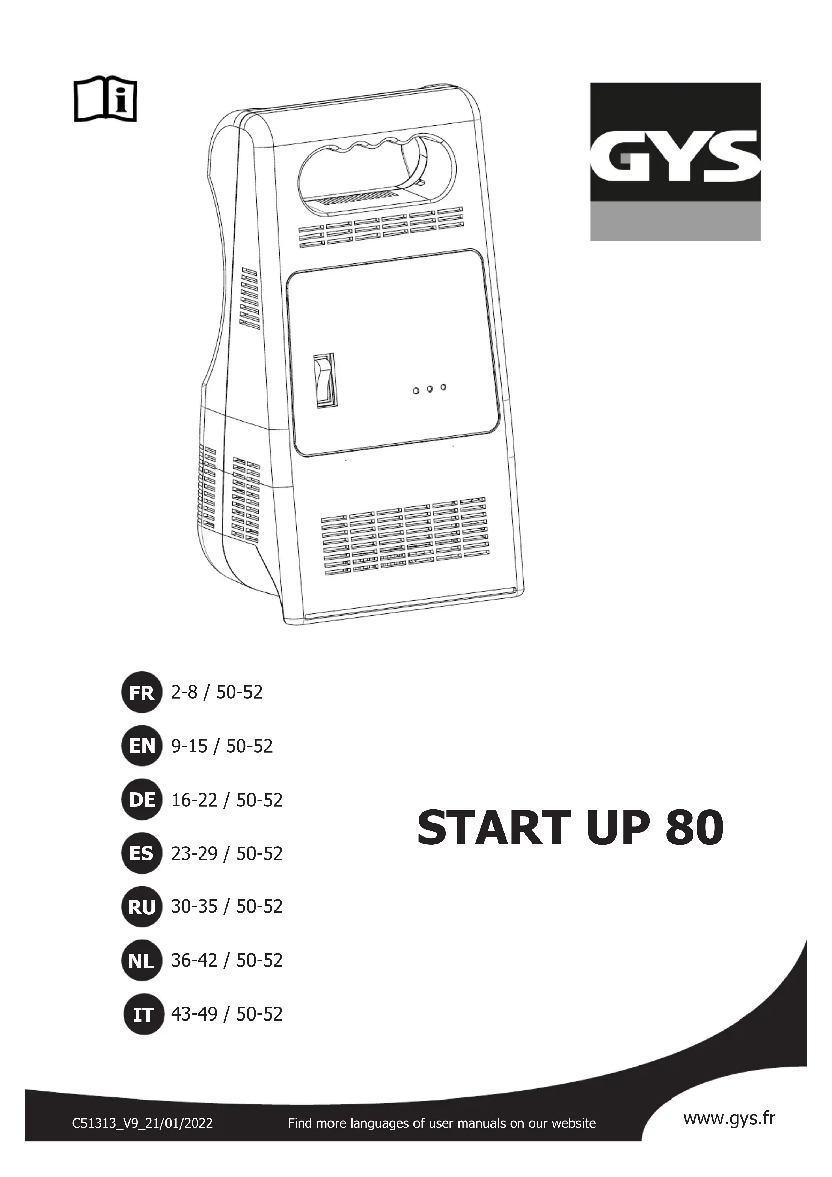 Retrouvez gratuitement la notice de l'appareil Start UP 80 GYS au format PDF.