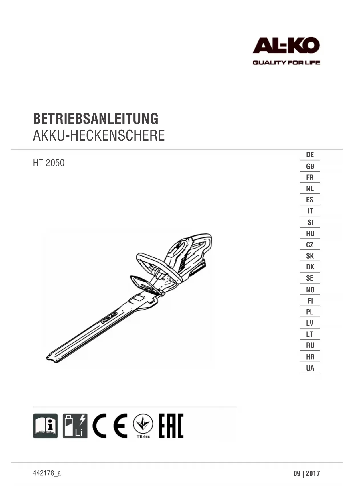 MODE D'EMPLOI HT 2050 AL-KO
