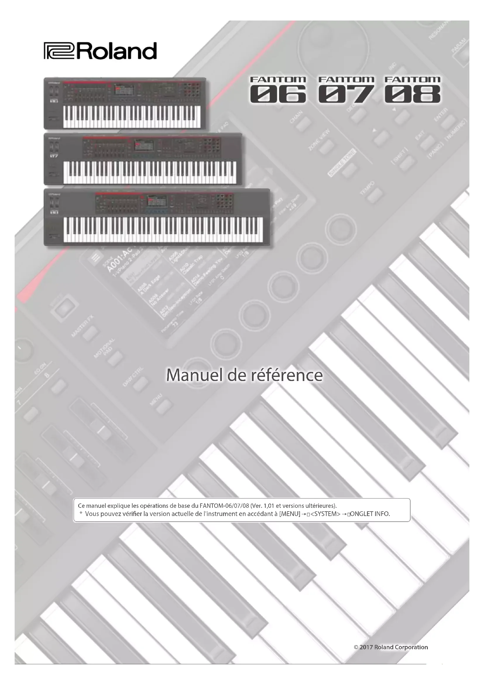 Manuel de référence © 2017 Roland Corporation Ce manuel explique les opérations de base du FANTOM-06/07/08 (Ver. 1,01 et versions ultérieures).