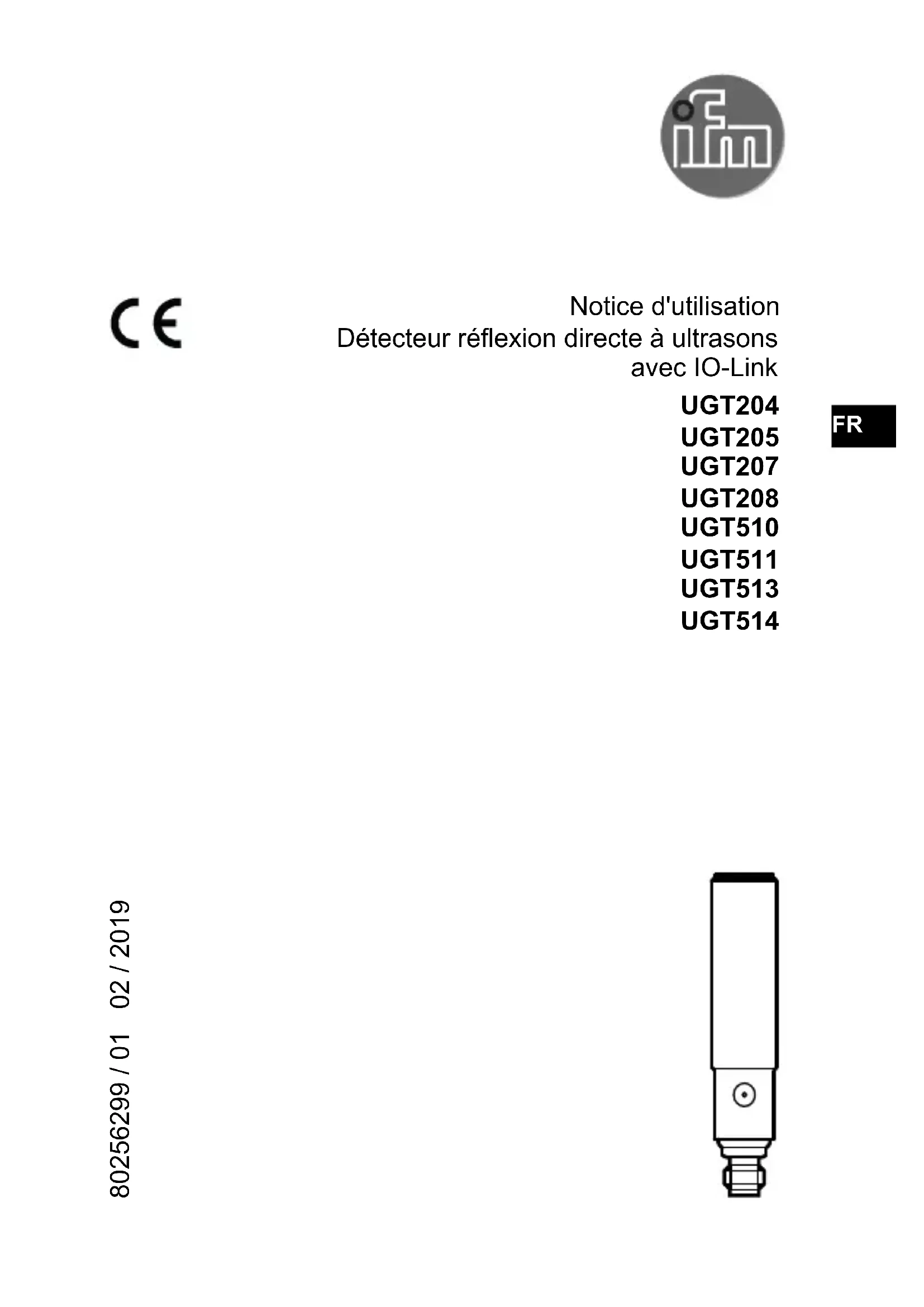 Notice d'utilisation Détecteur réflexion directe à ultrasons avec IO-Link UGT204 UGT205 UGT207 UGT208 UGT510 UGT511 UGT513 UGT514 80256299 / 01 02 / 2019 FR2 1 Consignes de sécurité