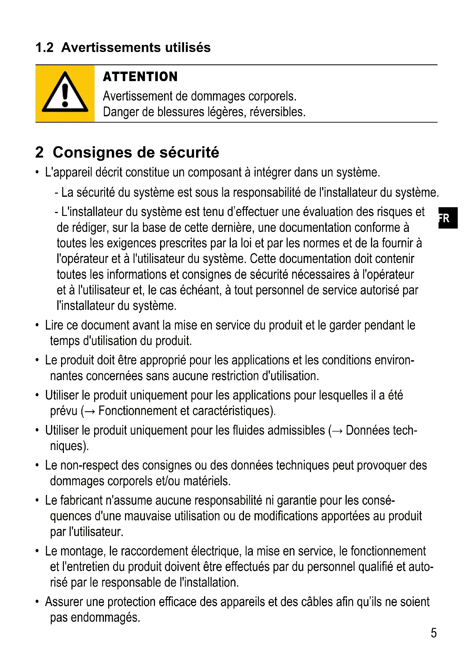- Utiliser le produit uniquement pour les fluides admissibles ( Données techniques).