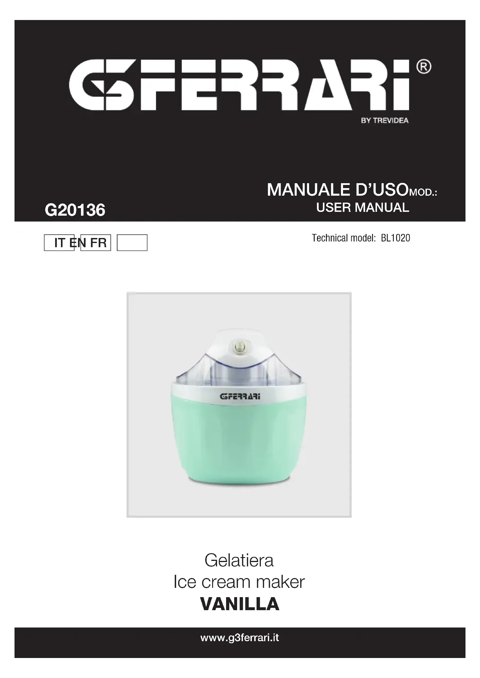 Vanilla G20136 - Machine à glace G3 Ferrari - Notice d'utilisation et mode d'emploi gratuit