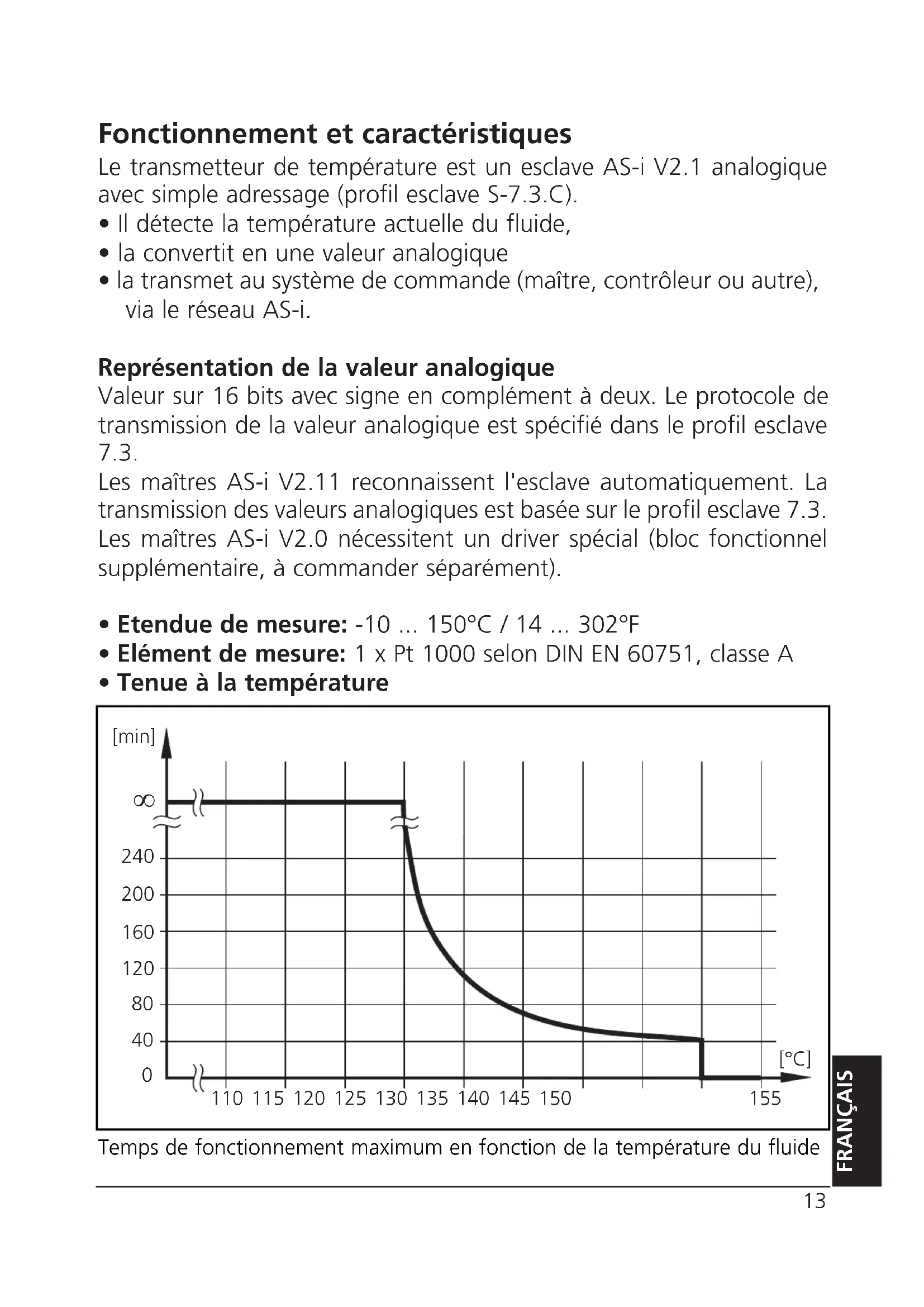 - .5 / 1 KV EN 61000-4-6 HF conducted: VFonctionnement et caractéristiques Le transmetteur de température est un esclave AS-i V2.1 analogique avec simple adressage (profil esclave S-7.3.C). p. 10
