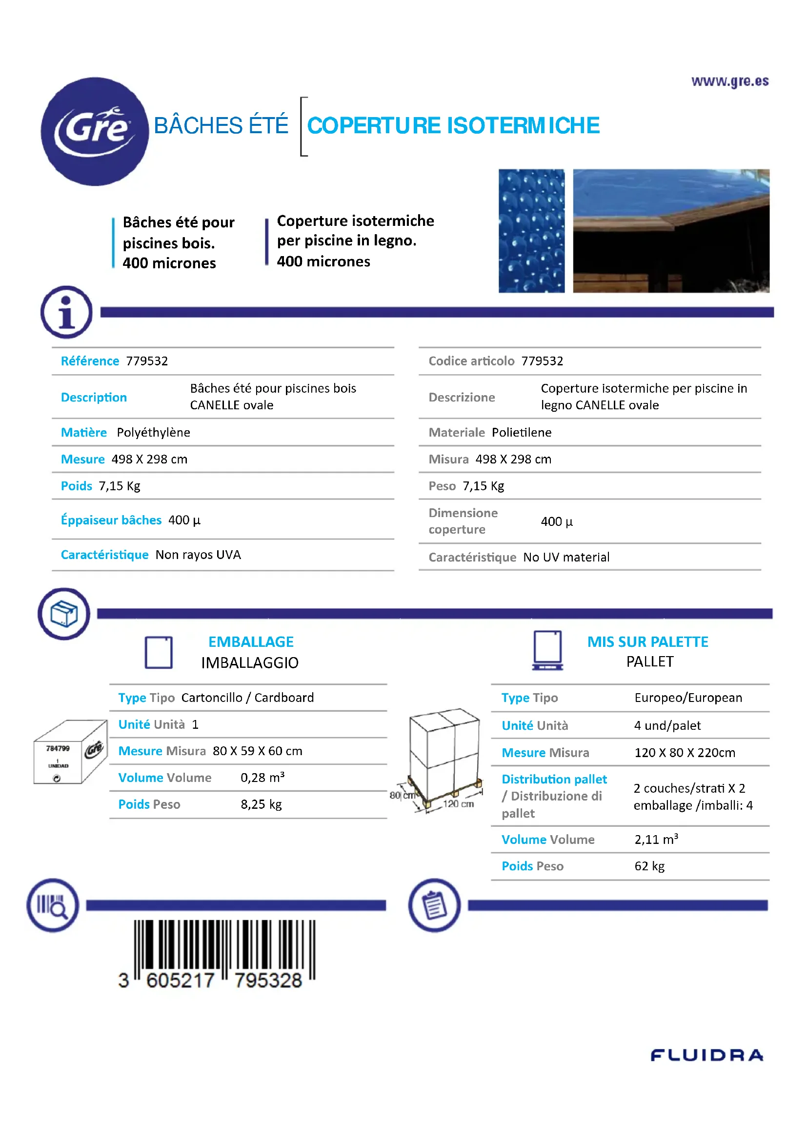 Bâches été pour piscines bois. 400 micrones Coperture isotermiche per piscine in legno. 400 micrones