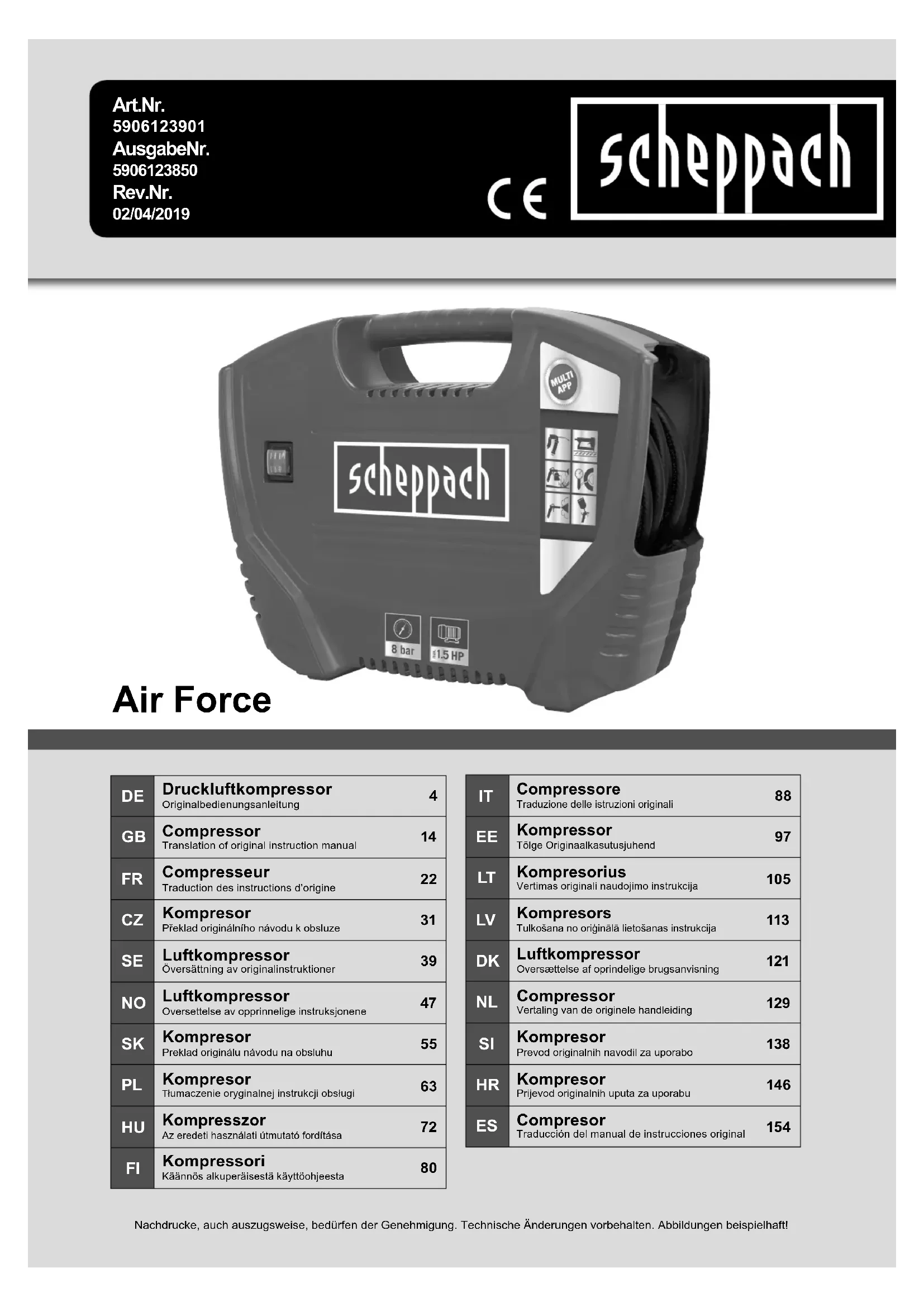 Retrouvez gratuitement la notice de l'appareil Air Fore 2 SCHEPPACH au format PDF.