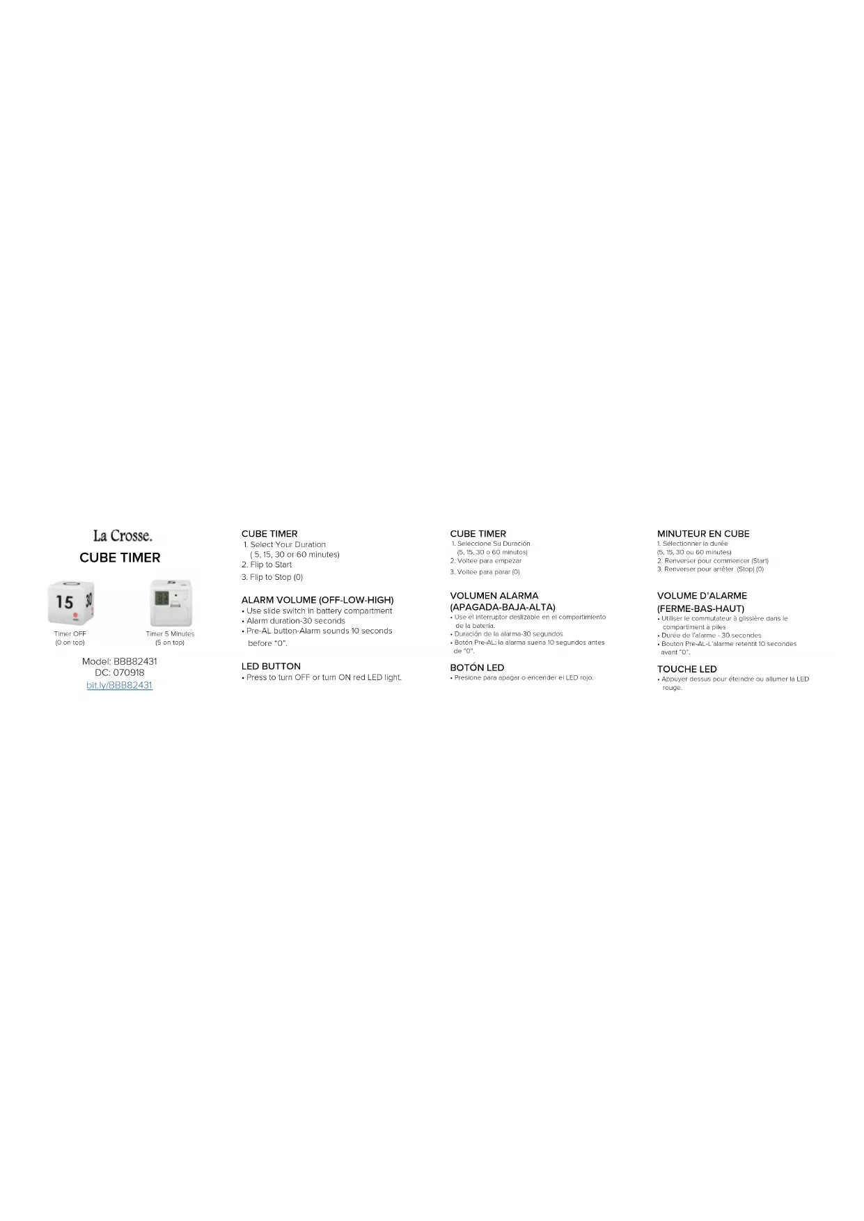 Cet appareil est conforme à la partie 15 des règles FCC. L’opération est soumise aux deux conditions suivantes: (1) Cet appareil ne doit pas causer d’interférences nuisibles, et (2) Cet appareil doit accepter toute interférence reçue, y compris les interférences susceptibles de provoquer une opération indésirable. Remarque: Lors de la manipulation de la minuterie, vous entendrez le mouvement à l’intérieur. C’est le capteur d’inclinaison interne qui permet d’ajuster l’orientation de l’écran LCD de votre minuterie. SOIN + ENTRETIEN Ne pas mélanger les anciennes et les nouvelles piles • Ne pas mélanger des piles alcalines, au lithium, standard ou rechargeables • Acheter toujours la bonne taille et la bonne qualité de la pile la mieux adaptée à l’usage prévu • Nettoyer les contacts de la pile et ceux de l’appareil avant l’installation de la pile • Respecter la bonne polarité des piles (+ / -) • Retirer les piles de l’équipement qui ne sera pas utilisé pendant une période prolongée • Retirer aussitôt que possible les piles périmées.