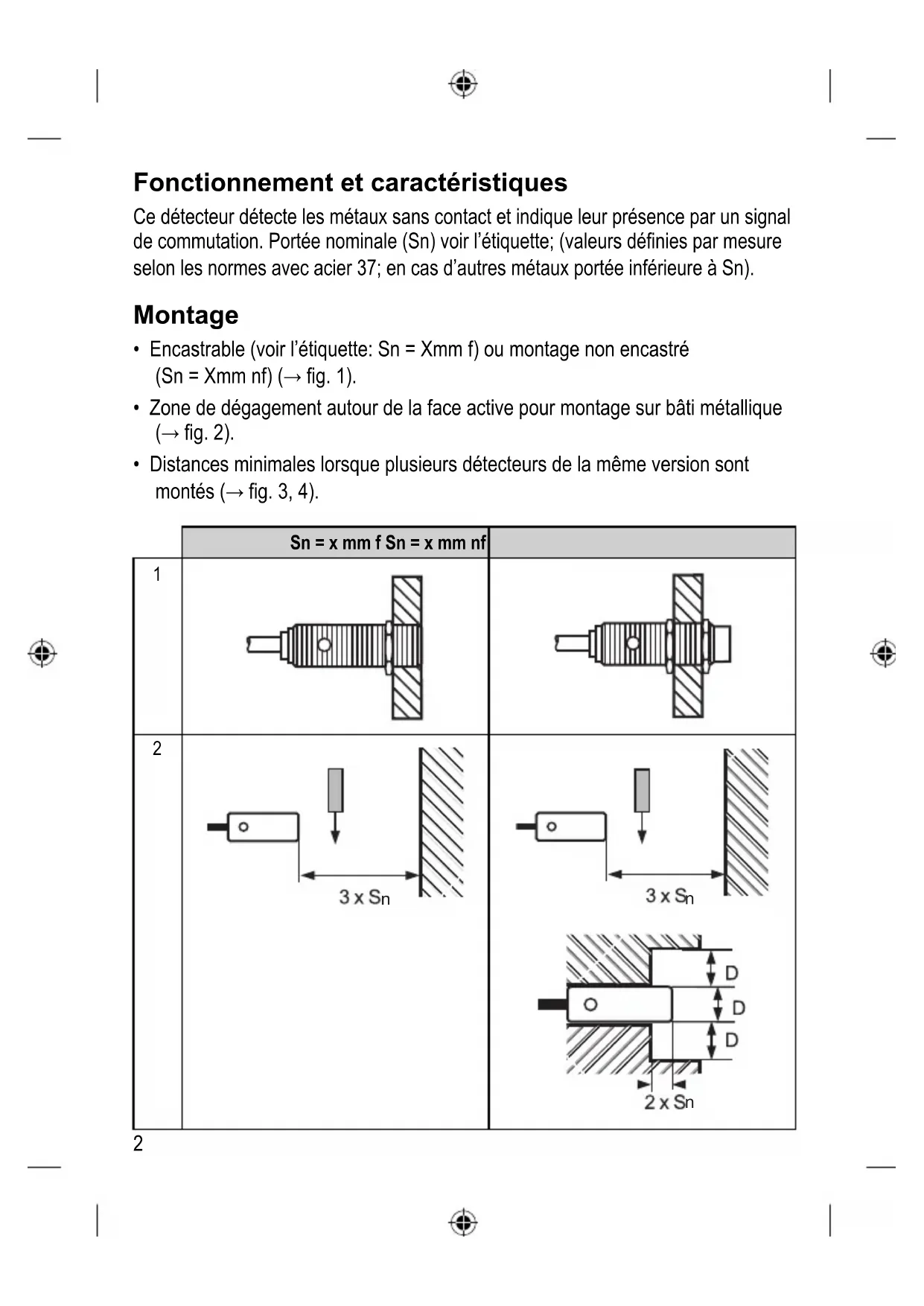 - Distances minimales lorsque plusieurs détecteurs de la même version sont montés (→ fig. 3, 4). Sn = x mm f Sn = x mm nf