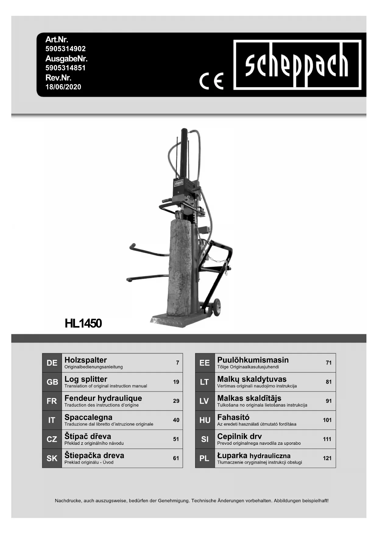 HL1450 - Répartiteur SCHEPPACH - Notice d'utilisation et mode d'emploi gratuit