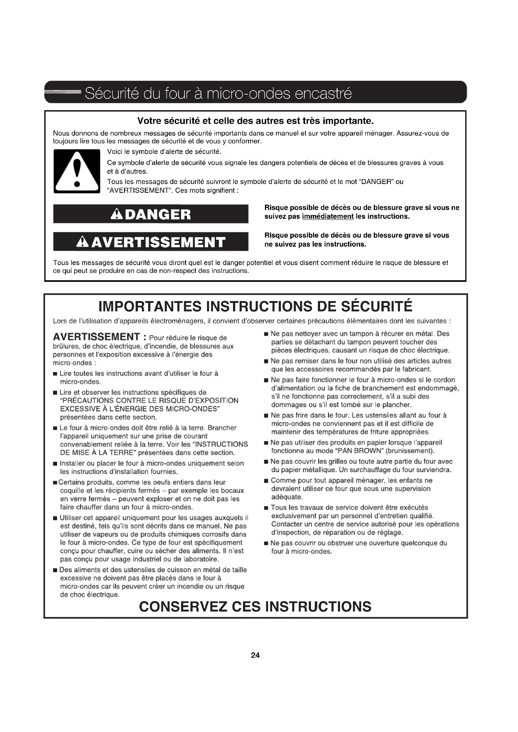 Sécurité du four à micro-ondes encastré25