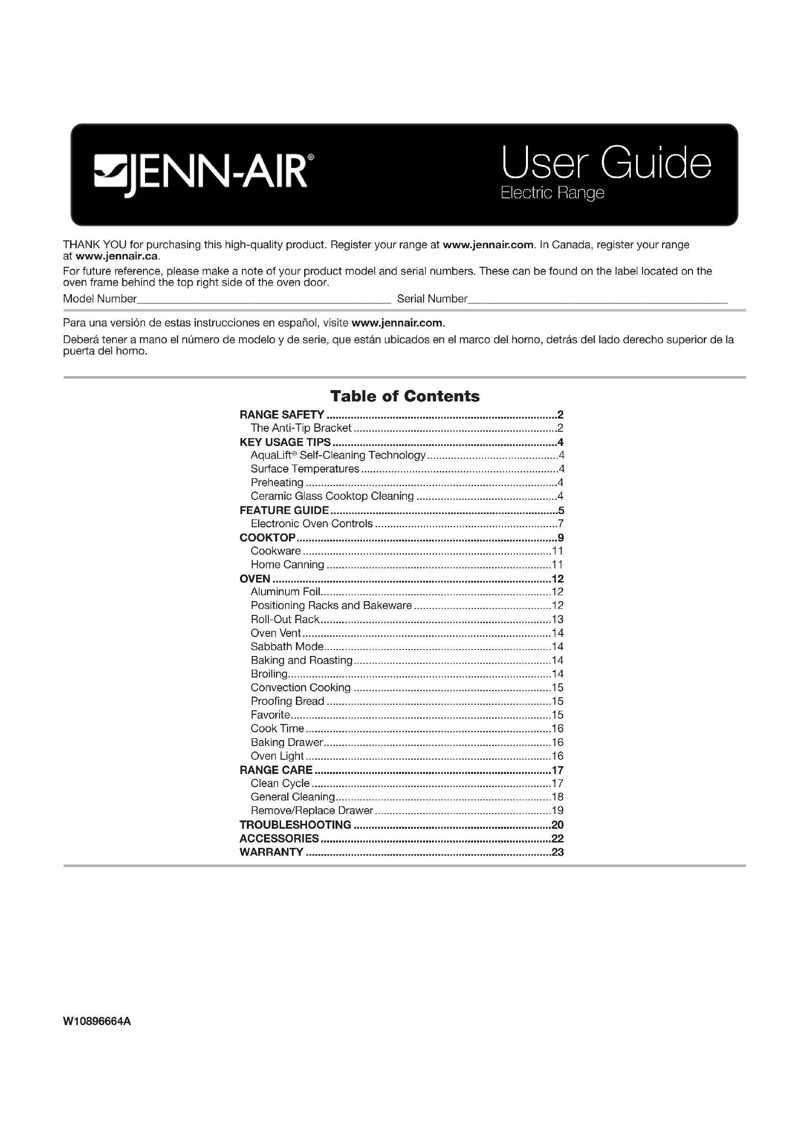 enlevés, modifiés ou ne peuvent pas être facilement identifiés.Le coût d’une réparation ou d’un remplacement dans le cadre de ces circonstances exclues est à la charge du client. https://www.jennair.ca12/14CLAUSE D’EXONÉRATION DE RESPONSABILITÉ AU TITRE DES GARANTIES IMPLICITESLES GARANTIES IMPLICITES, Y COMPRIS LES GARANTIES APPLICABLES DE QUALITÉ MARCHANDE OU D’APTITUDE À UN USAGE PARTICULIER, SONT LIMITÉES À UN AN OU À LA PLUS COURTE PÉRIODE AUTORISÉE PAR LA LOI. Certains États et provinces ne permettent pas de limitation sur la durée des garanties implicites de qualité marchande ou d’aptitude à un usage particulier, de sorte que la limitation ci-dessus peut ne pas être applicable dans votre cas. Cette garantie vous confère des droits juridiques spécifiques et vous pouvez également jouir d’autres droits qui peuvent varier d’une juridiction à l’autre.EXONÉRATION DE RESPONSABILITÉ DANS LES DOMAINES NON COUVERTS PAR LA GARANTIE Jenn-Air décline toute responsabilité au titre de la qualité, de la durabilité ou en cas de dépannage ou de réparation nécessaire sur ce gros appareil ménager autre que les responsabilités énoncées dans la présente garantie. Si vous souhaitez une garantie plus étendue ou plus complète que la garantie limitée fournie avec ce gros appareil ménager, adressez-vous à Jenn-Air ou à votre détaillant pour obtenir les modalités d’achat d’une garantie étendue.LIMITATION DES RECOURS; EXCLUSION DES DOMMAGES FORTUITS OU INDIRECTSLE SEUL ET EXCLUSIF RECOURS DU CLIENT DANS LE CADRE DE LA PRÉSENTE GARANTIE LIMITÉE CONSISTE EN LA RÉPARATION PRÉVUE PAR LA PRÉSENTE. JENN-AIR N’ASSUME AUCUNE RESPONSABILITÉ POUR LES DOMMAGES FORTUITS OU INDIRECTS. Certains États et certaines provinces ne permettent pas l’exclusion ou la limitation des dommages fortuits ou indirects de sorte que ces limitations et exclusions peuvent ne pas être applicables dans votre cas. Cette garantie vous confère des droits juridiques spécifiques et vous pouvez également jouir d’autres droits qui peuvent varier d’une juridiction à l’autre.51 NotesW10896664A SP PN W10898299