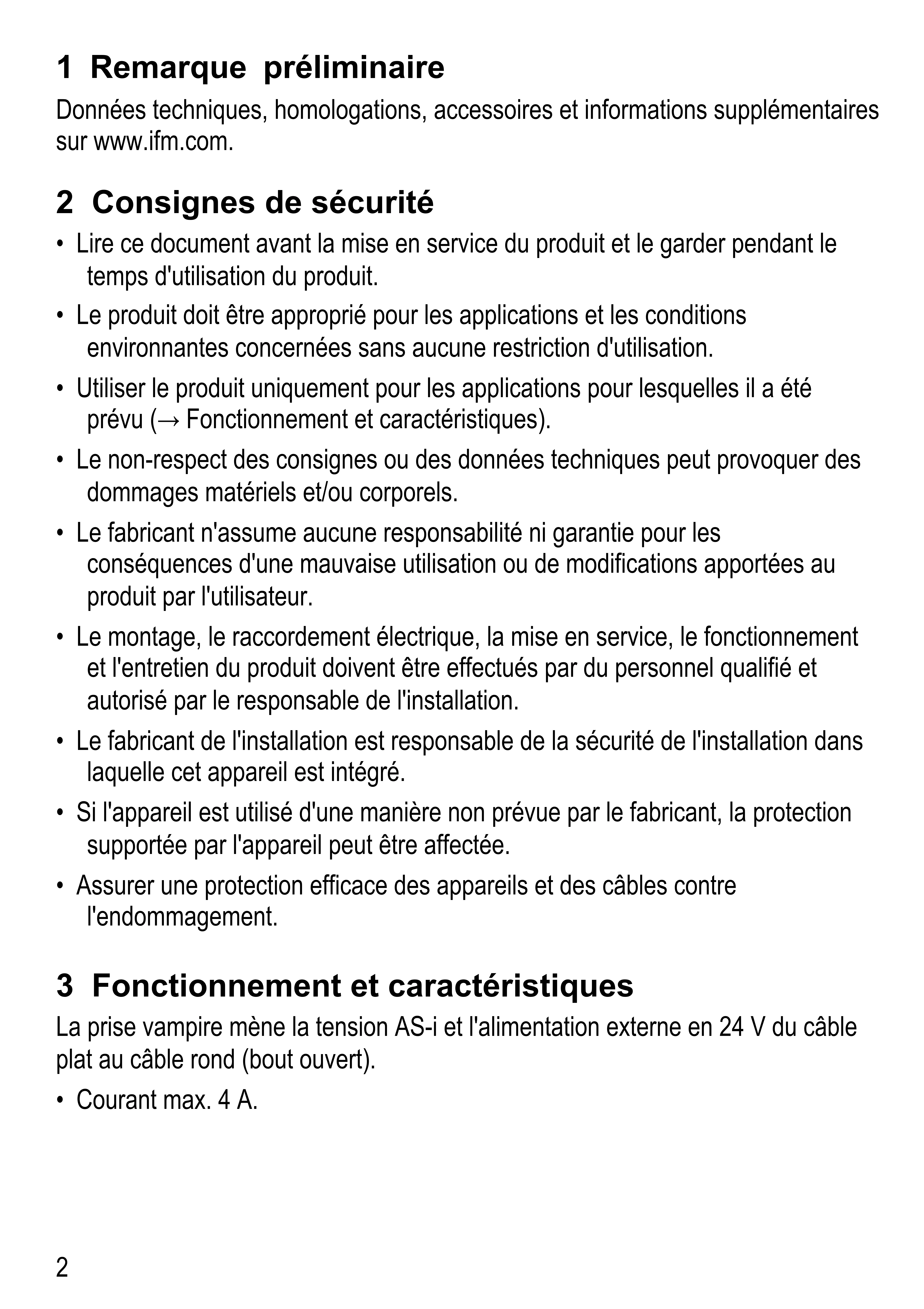 Notice de montage Prise vampire E70598 E70599 80271733/00 12/2017 FR2 1 Remarque préliminaire Données techniques, homologations, accessoires et informations supplémentaires sur www.ifm.com. 2 Consignes de sécurité